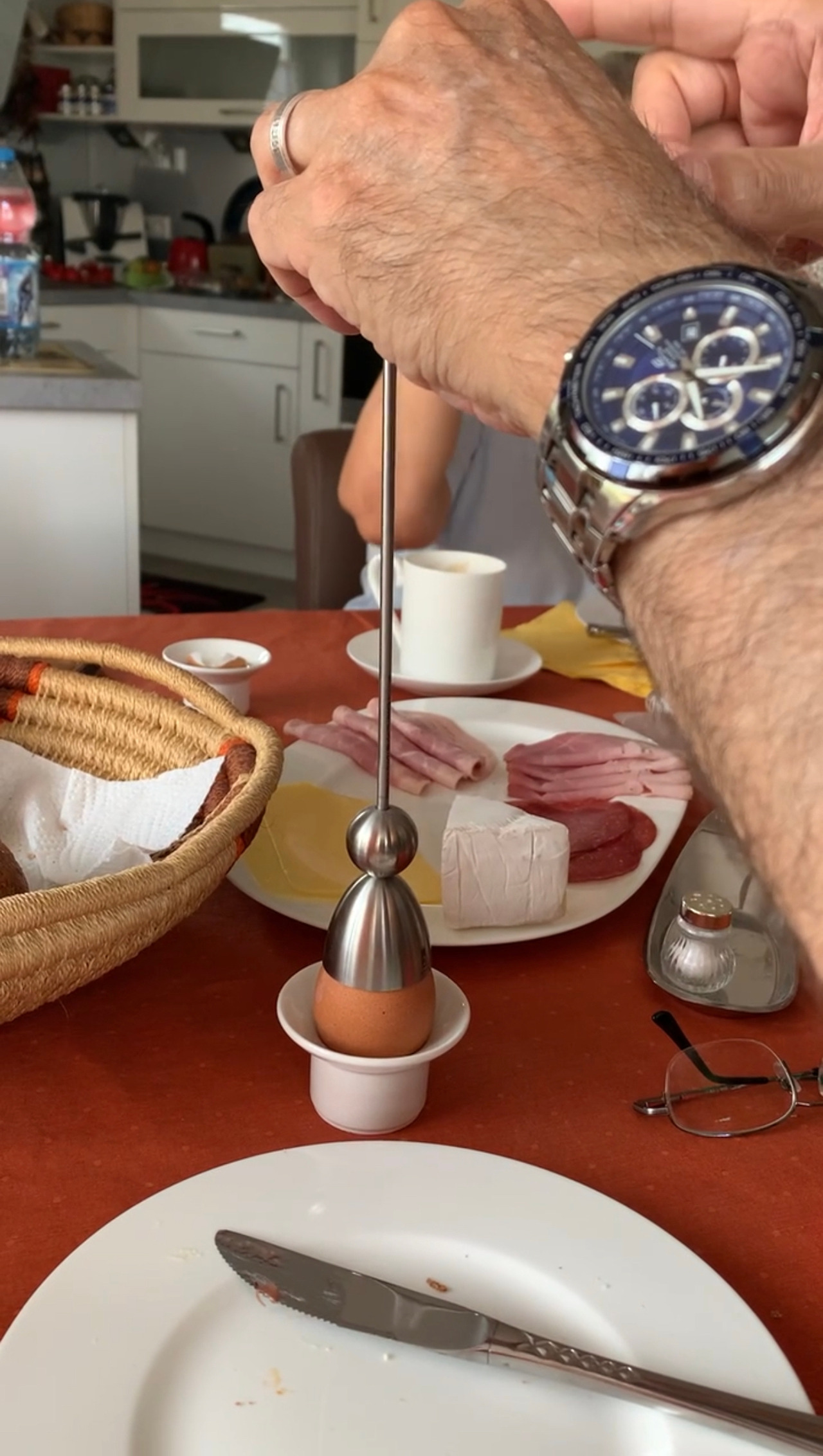 가장 특이하고 우리가 좋아하는 음식은 계란인데, 계란을 반숙으로 삶아서 달걀 그릇에 얹어 윗부분만 껍질을 까서 소금과 후추를 뿌린 뒤 작은 스푼으로 떠서 먹는다. 나는 이 계란 먹는 방식을 무척 좋아해서 집에 달걀 그릇이며, 윗부분 깨는 도구 등을 구비해 놓았다. 영양도 맛도 그만인 독일 브런치, 스티븐의 흐뭇한 미소가 충분히 이해된다.