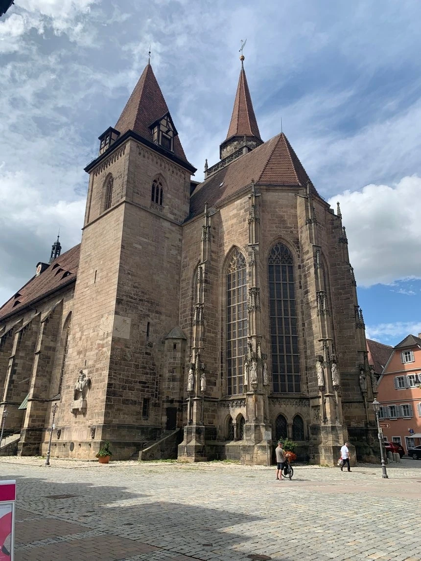 누렘버그에 가는 길에 우리는 그동안 궁금했던 안스바흐 ( Ansbach)에 잠깐 들르기로 했다. 시간이 많지는 않아 올드타운만 돌아봤다. 독일에서 내비게이션을 켜고 도시 이름을 올리면 이 내비게이터가 딱 도시의 중앙으로 데려다준다. 그런데 이 도심은 올드 타운의 가장 중심이자 볼거리 충만한 시청, 교회 등이라 올해 우리는 내비게이션 도움을 아주 많이 받았다. 원래는 한 지역으로 이동하기 전에 그 지역의 가볼 곳, 먹을 곳, 등등을 리서치를 해야 하는데 올해는 남편은 폰을 잃어버렸고 그나마 내 폰은 심카드가 작동이 안돼서 보통 불편한 게 아니다. 숙소에 돌아가 인터넷에 연결한 후 써야 하는 패턴 때문에 검색할 시간과 능력이 부족했다. 그래서 사전 지식이 거의 없는 상태로 여행을 하고 있는 중이다.