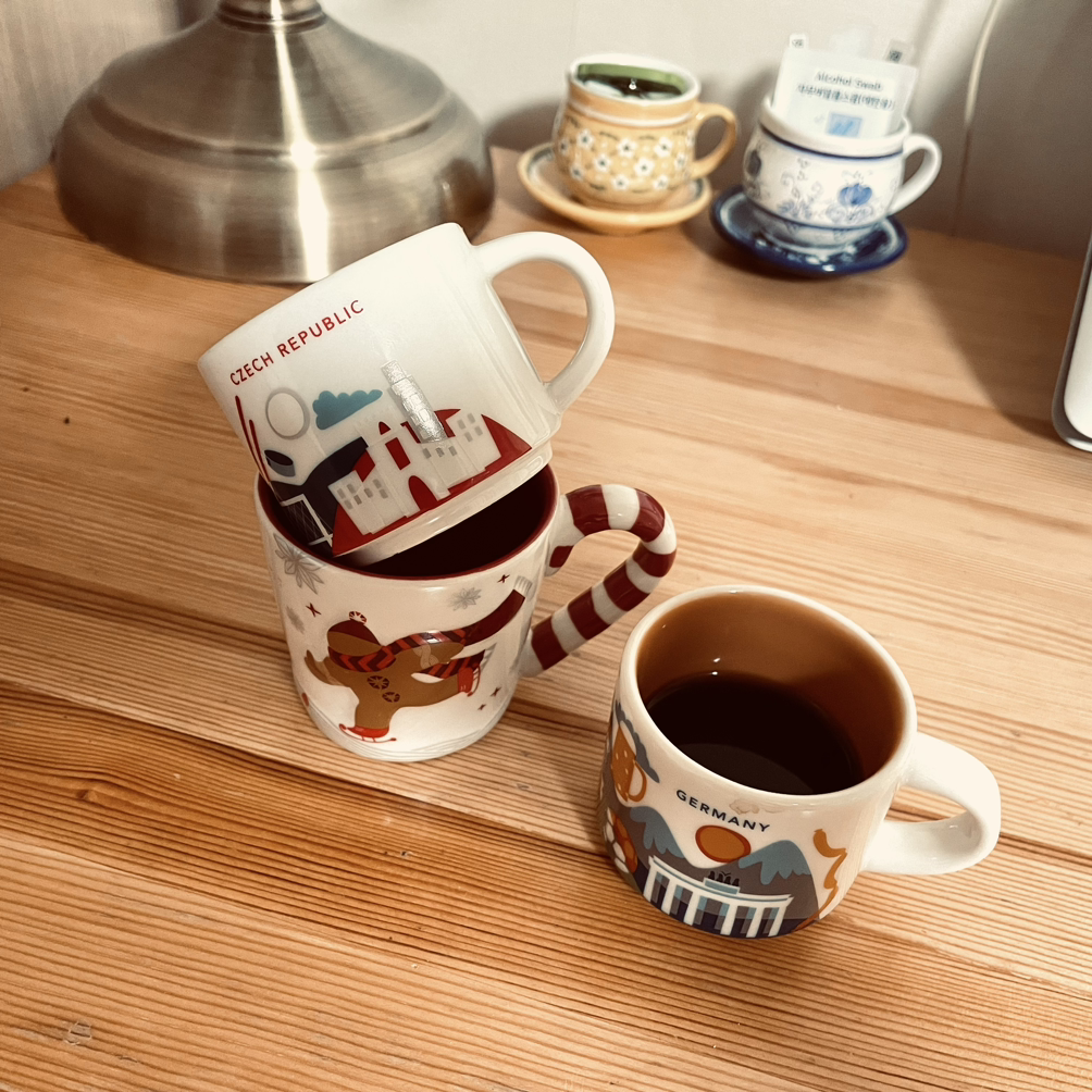 아침에 눈 떠서 제일 먼저 마시는 커피는 주로 모카포트를 이용하는데 그때 애용하는 건 데미타세이다. 휘뚜루마뚜루 쓰기에는 스벅이 최고지만 좀 여유가 있는 날은 빈티지 데미타세를 꺼낸다. 귀여운 물방울무늬에 초록과 빨강이 섞인 빈티지 빌보. 소서까지 갖춰서 마시는 커피 한 잔은 하루를 기분 좋게 만들어 준다.