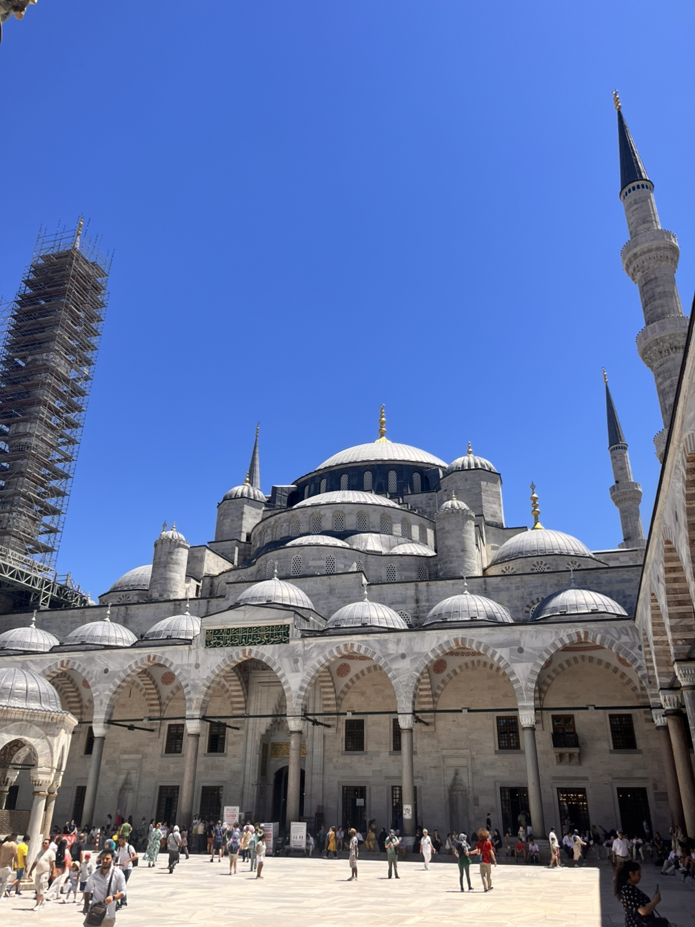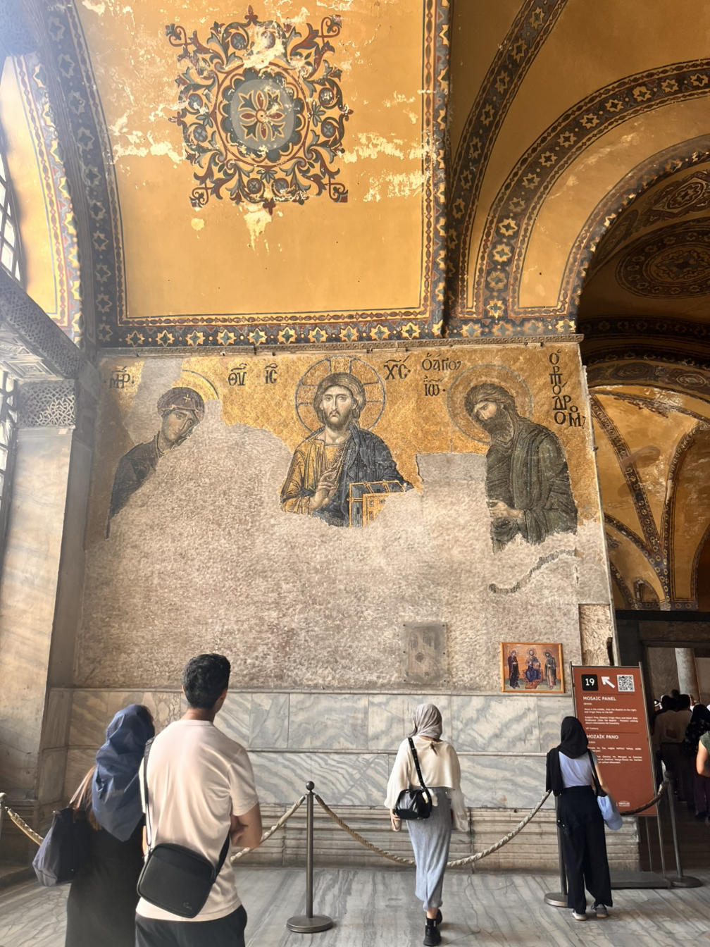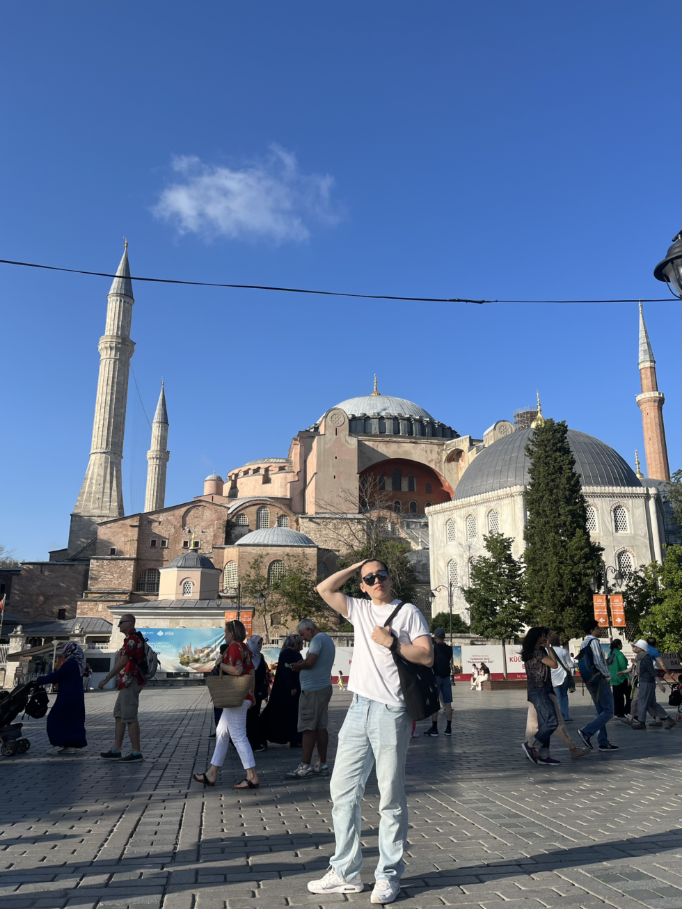 술탄 아흐메트 광장근처에서 트램을 하차해 몇 걸음 걸으니 좌우로 거대한 모스크 건물이 바로 보였다. 두 건물 모두 압도적인 크기로 보는이로하여금 경외감을 들게 만들었다. 아야소피아 앞으로 가보니 수많은 관광객들이 가득했다. 자세히 몰입해서 보지 않아도 범상치않은 건물임을 바로 알 수 있는 이 건축물이 1500년전에 지어졌다는게 믿어지지 않았다. 팟캐스트에서 진행자가 외계인이 지어주고 간 거 같다는 이야기를 했는데, 그런 느낌이었다. 2024년에 인터넷에서 AI가 그림을 그려주는 시대에 살고있는 내가 봐도 그런데 옛날 사람들은 더했으리라 생각이 들었다. 뒤편에 블루 모스크(술탄 아흐메트 모스크)는 크기로는 아야소피아보다 작다고 하나 이또한 굉장한 느낌을 주었다. 유네스코 세계 유산에 등록된 이 건축물은 이슬람 건축물에 생소한 나에게 이 종교는 어떤종교일지 궁금증을 갖게 할 정도로 아름다웠다.