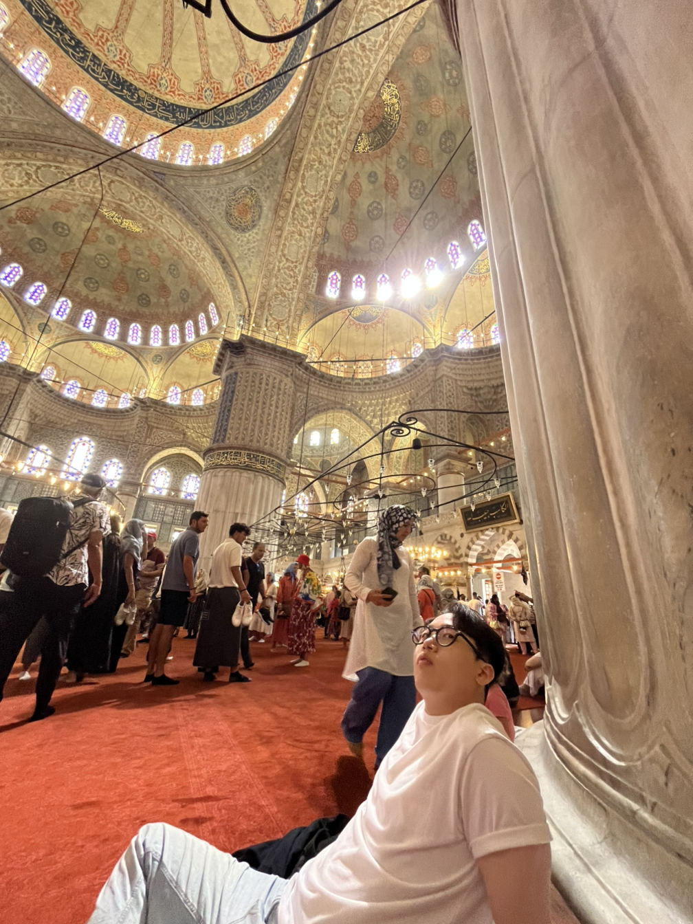 전날 두 모스크의 내부에는 들어가보지 못해서 아야소피아 입장권을 온라인으로 구매하고 다시 올드타운으로 향했다. 아야소피아는 현재 모스크지만 원래는 카톨릭 성당으로 건축되었고 특히 최근 70년을 보면 관광객들에게 개방했다가 다시 모스크로 회귀하고 비공개 하는 등 여러 변화를 거친 역사를 갖고있다.현재는 티켓을 구매하면 2층을 관광할 수 있다. 1층은 이슬람 기도시간을 피해 공개되 특정 시간에만 입장이 가능하다. 그리고 외부에 따로 세워진 아야소피아 박물관에서 이 건축물과 콘스탄티노폴리스에 관련된 멋진 이야기와 유물들을 볼 수 있다. 이 성당은 본디 내부가 모두 금박 모자이크로 장식되었는데 모스크로 바꾸는 과정에서 회벽으로 장식을 덧칠했고 이게 지진때 떨어져나가면서 많이 손상되었다고 한다. 그래서그런지 내부로 들어갔을때 일부 금박 장식을 보며 안타까운 마음이 들었고 되려 아랍어로 쓰인 대형 이슬람 율법 간판이 더 멋지게 보였다. 아야소피아 1층은 시간이 맞지 않아 들어가보지 못하고 이어서 블루모스크 내부에 들어갔다. 모스크는 유럽의 다른 성당들과 달리 바닥에서 기도하는 특성상 카펫으로 바닥이 깔려있어 신발을 벗고 들어가도록 설계되어있다. 덕분에 바닥에 가부좌를틀고 앉아 내부 장식들을 편안히 감상할 수 있었는데 빛이 들어오는 방향을 고려해 꾸며진 내부모습들은 환상적이었다. 한참을 감탄하며 구경하다가 기도시간이 도래해서 밖으로 나왔다.