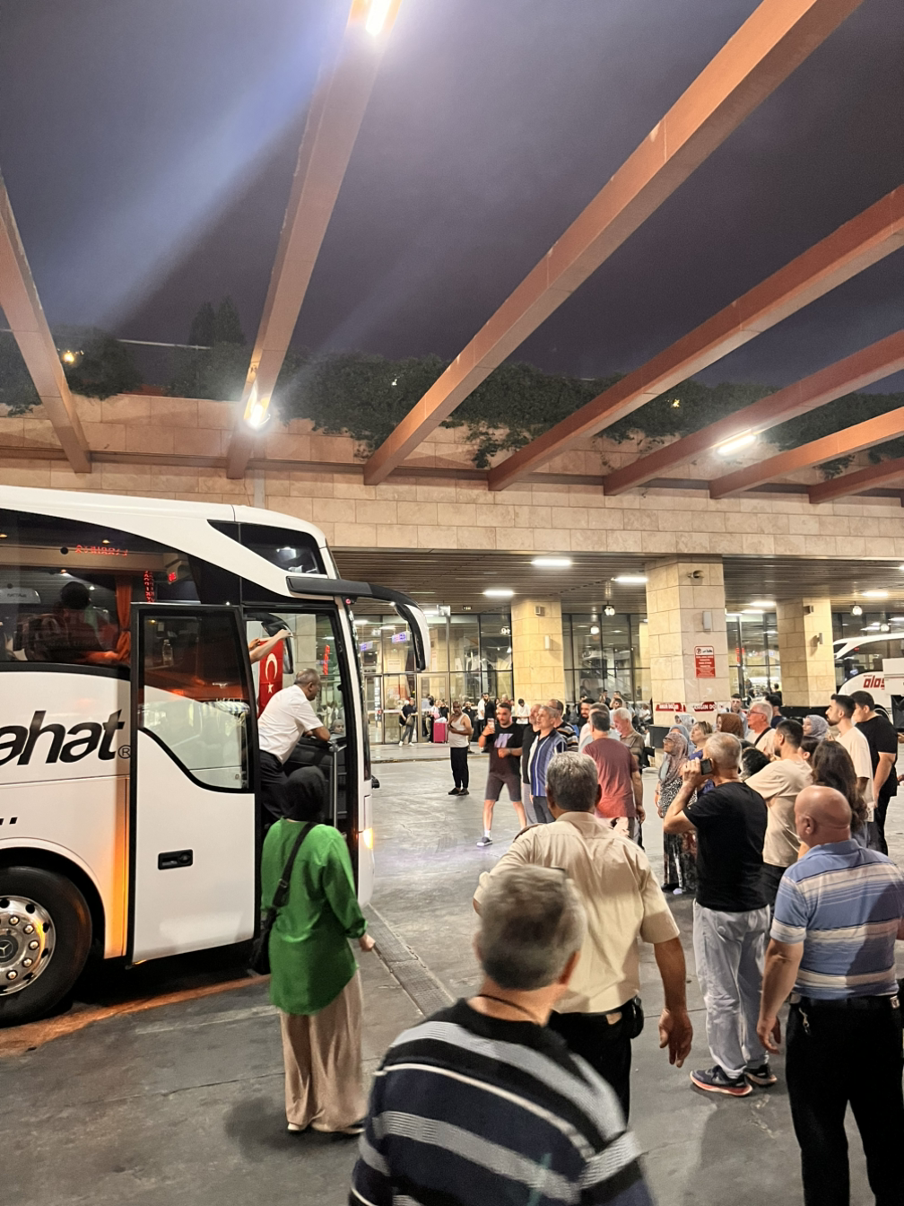 이스탄불에서 파묵칼레를 향하는 관문도시 데니즐리까지 차로 열시간정도 걸리지만 항공편으로 오니 비행시간 한시간남짓에 데니즐리공항에서 데니즐리 버스터미널이 있는 시내까지 40분정도 추가해 두시간이 채 안걸려서 숙소까지 올 수 있었다. 튀르키예 국토 면적은 대한민국보다 훨씬 커서 직접 비교하긴 어렵지만 대전정도의 위치에 위치해 전국 어디로든 버스로 이동할 수 있는 교통의 요지인 데니즐리에서는 군 입대하는 장병을 배웅하는 재미난 풍경을 볼 수 있었다. 호텔이 버스터미널 바로 뒤편이었는데 큰 소리로 사람들이 노래하는 소리가 들려 무슨일일까 궁금했다. 저녁시간 터미널에 가보니 사람들이 출발하는 버스 앞을 막고 다같이 노래를 불렀다. 그중 한사람에게 무슨일이냐 물으니 군입대하는 사람을 배웅하는 중이라고 했다. 자세히 보니 거수경례하는 아저씨들과 서로 안으며 위로하는 가족들도 눈에 띄었다. 그들이 부르는 노래는 튀르키예 국가라고 했다. 출발하는 버스를 막으니 동승자들은 본인 일정이 늦어지는 샘일테지만 그 누구도 불평하지 않고 버스기사도 이를 이해해주는 모양새였다. 여기 사람들 표정을 읽는것이 익숙하지 않지만 그들의 표정에서 인간적인 모습을 볼 수 있어 좋았다. 세상 사는거 비슷하구나 하는 생각도 들었다.