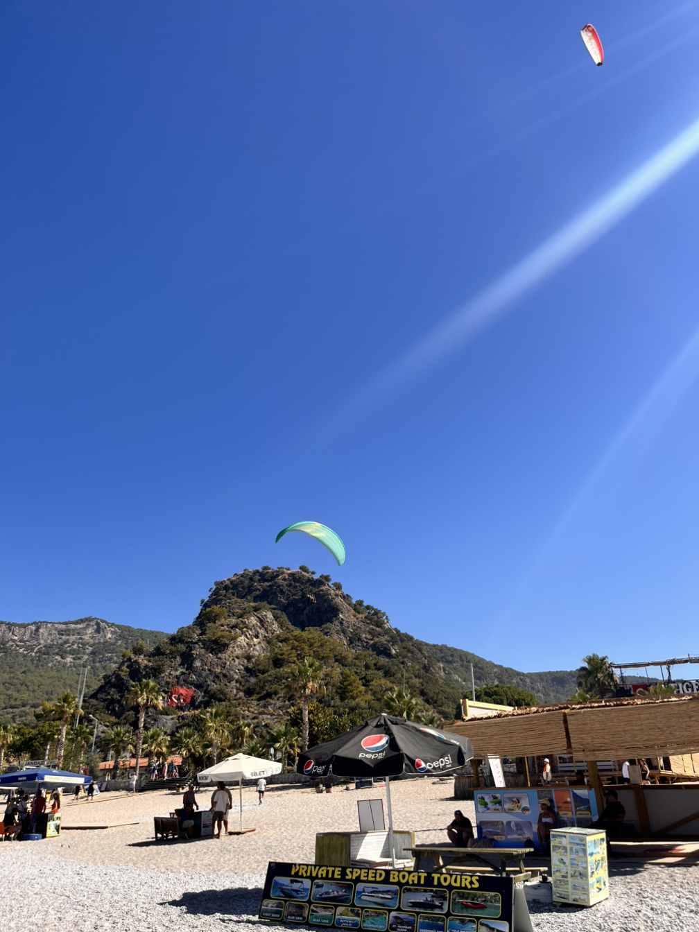 다음날 öludeniz 해변에서 출발하는 Dragon 보트투어를 타러 향했다. 해변 구경도 할겸 아침일찍 이동했는데 이름아침부터 페러글라이딩을 하는 사람들이 많았다. 착륙지가 특별한 비행장이 있고한게 아니라, 산 정상에서 출발해 해변 도로 한가운데 착륙하는 시스템이었는데 이곳에서는 일상으로 보였다. 해변을 따라 멋지고 고급스러운 레스토랑이 보였고 영국식 아침식사를 파는 가게들이 많았다. 나는 배에서 먹을것을 살 겸 슈퍼마켓에 들려 빵과 피스타치오, 과자를 좀 사서 보트투어에 올랐다.