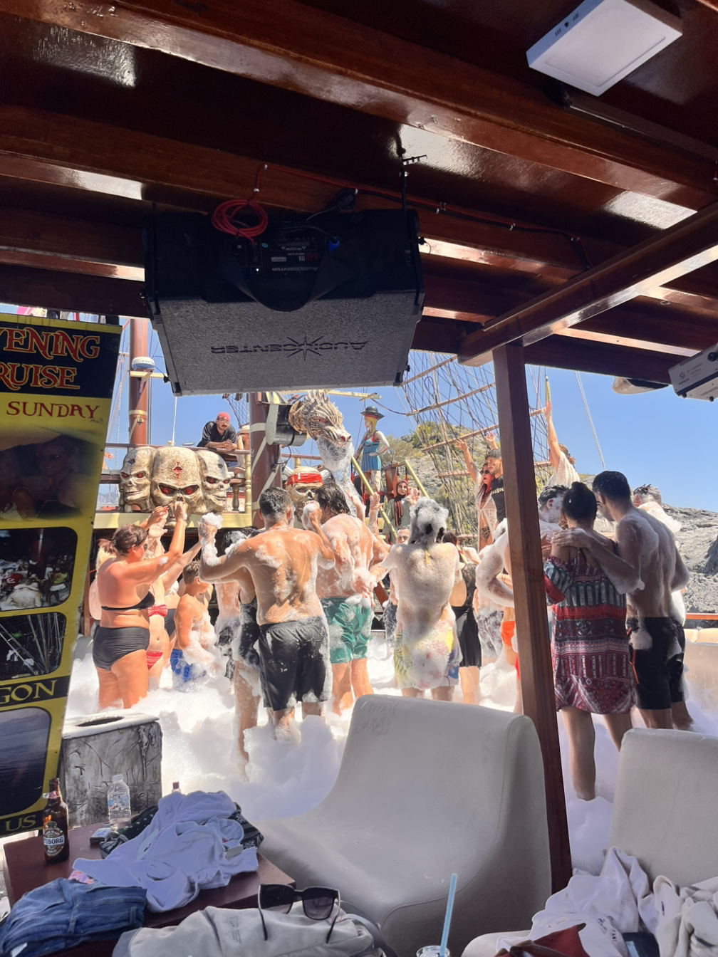 투어 프로그램은 동남아에서 많이 진행하는 호핑투어를 생각하면 되는데, 보트 크루들이 신나는 음악들을 틀며 분위기를 열심히 관리하고, 술/음료 주문을 받아 매상을 올리는 시스템이라고 보면 된다. 초반부터 주문을 이끌어내기위한 직원들의 노력이 가상해 몇번 거절하다고 중반쯤되면 많이 사먹게된다. 술을 마시지 않았던 나는 차이를 서너잔 마셨다. 일찍 도착한 편이라 뒤쪽 햇빛 가림막이 있는 좋은자리에 자리잡은 내 근처로 중국사람들 터키사람들이 자리잡았다. 나중에는 이 친구들이랑도 이야기하게 됐는데 자리선정이 이 투어에서 꽤나 중요하다는 생각도 들었다.