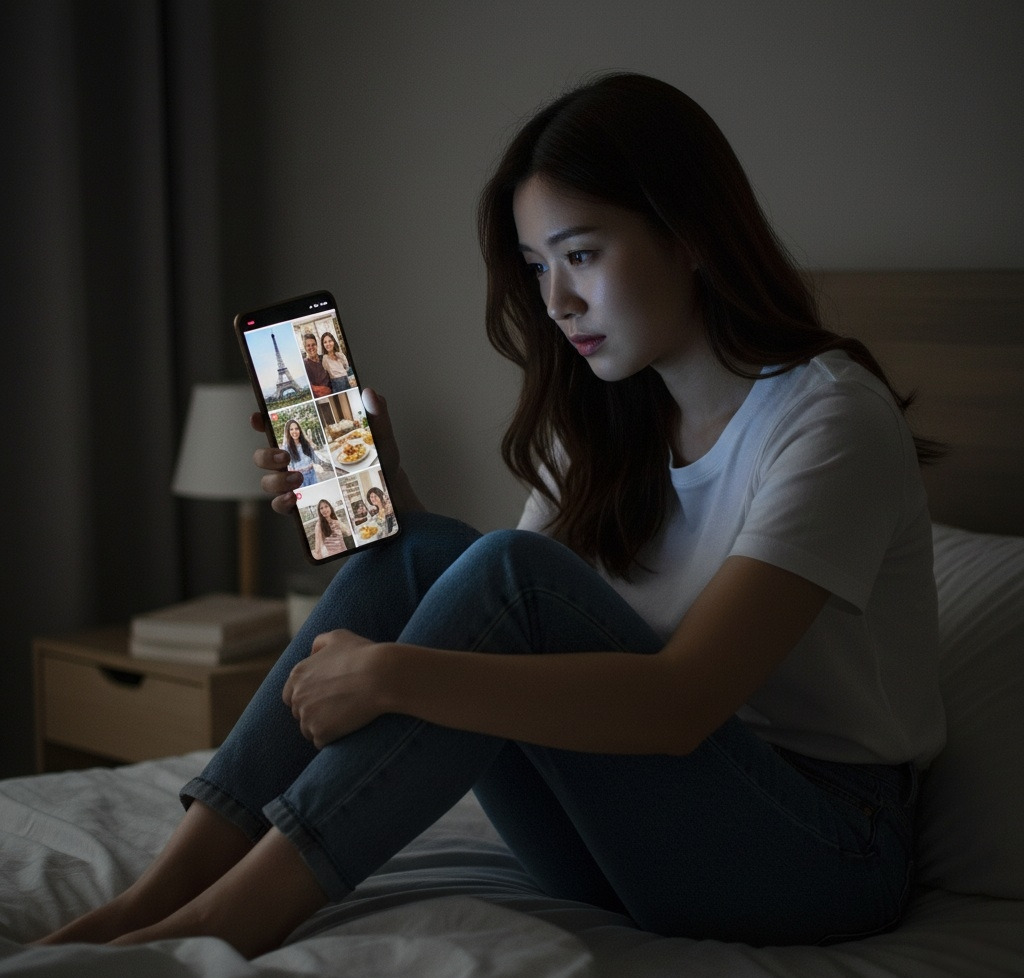 ​퇴근 후, 유리는 익숙하게 스마트폰을 켰다. 소셜 미디어 피드에는 화려한 해외여행 사진, 잘 나가는 친구들의 브런치 모임, 그리고 행복해 보이는 연인들의 모습이 가득했다. ‘나도 저런 때가 있었지.’