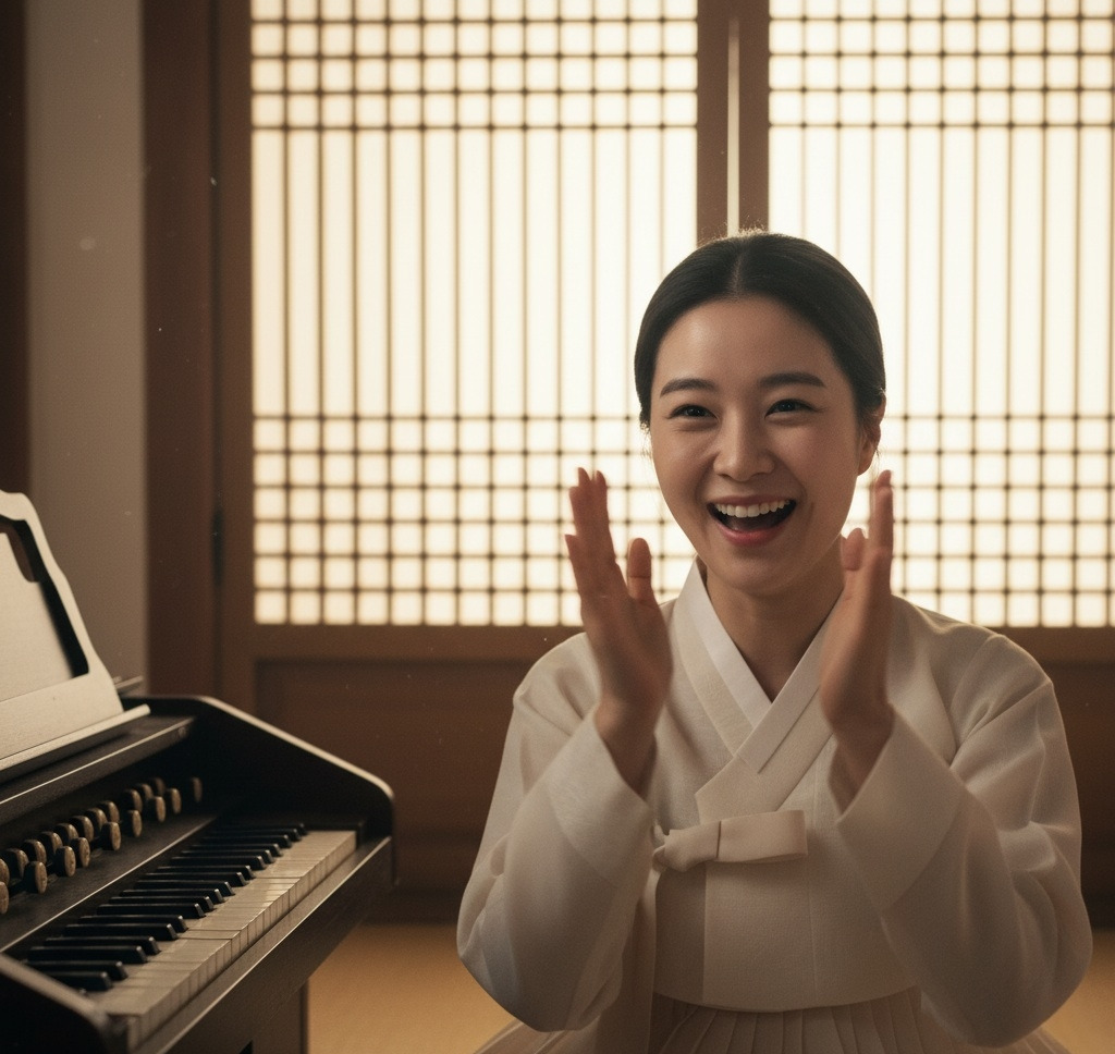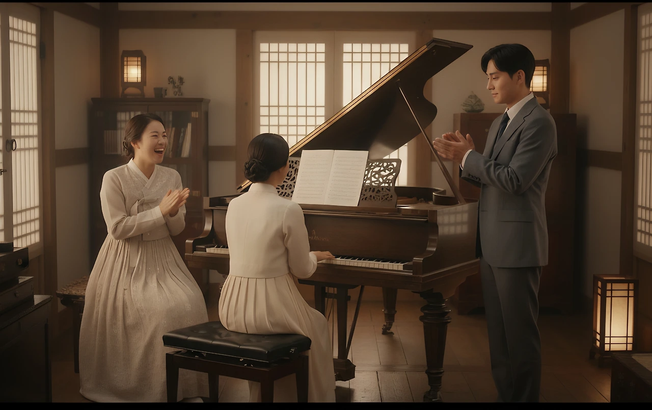 강지윤이 건반에서 손을 떼자, 이은주가 가장 먼저 박수를 치기 시작했다.