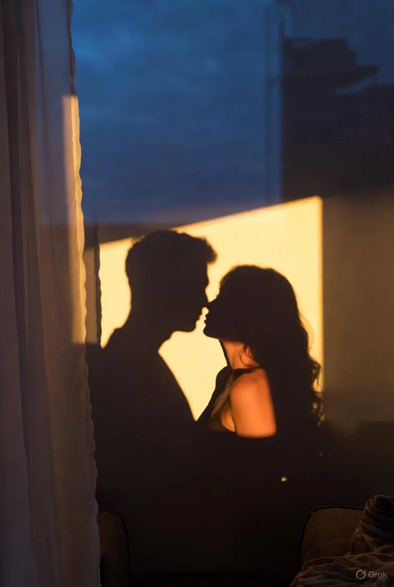 창문에 비친 두 그림자가