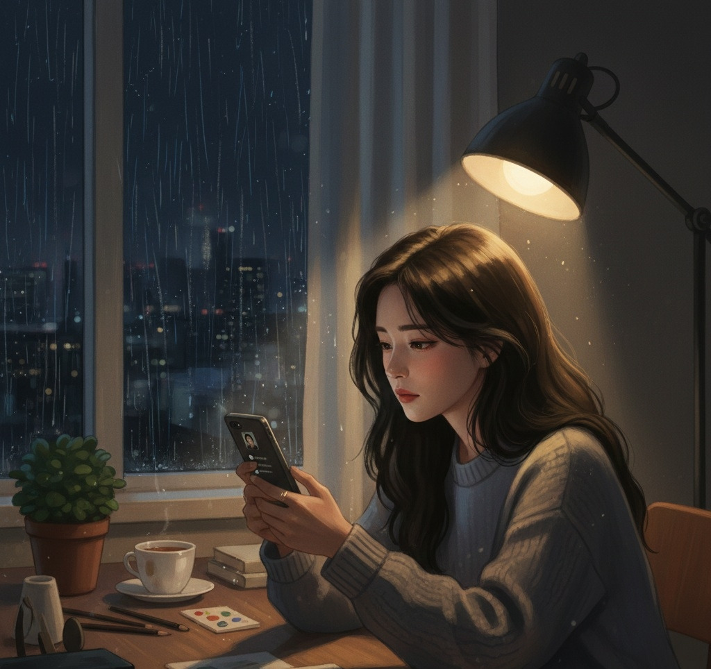 밤하늘에 떨어지는 빗소리가 창문을 두드릴 때, 이상하게도 그의 이름이 다시 떠올랐다.