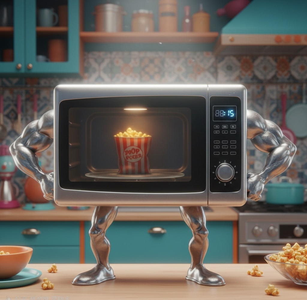 “아이고, 힘 좀 쓰는 친구. 누가 그렇게 옛날 방식으로 일하래? 난 3분이면 찬밥도 따끈하게 만들지. 요즘 사람들은 ‘편의성’이라고 하거든?”
