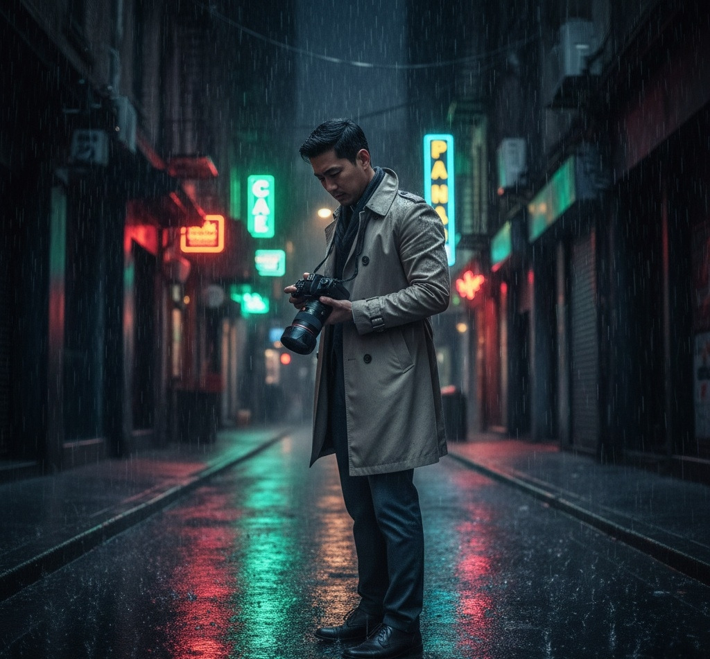 비가 내리는 골목의 반짝임,