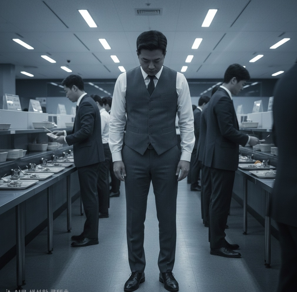 점심시간, 말없이 회사 식당에 줄을 서 있다가