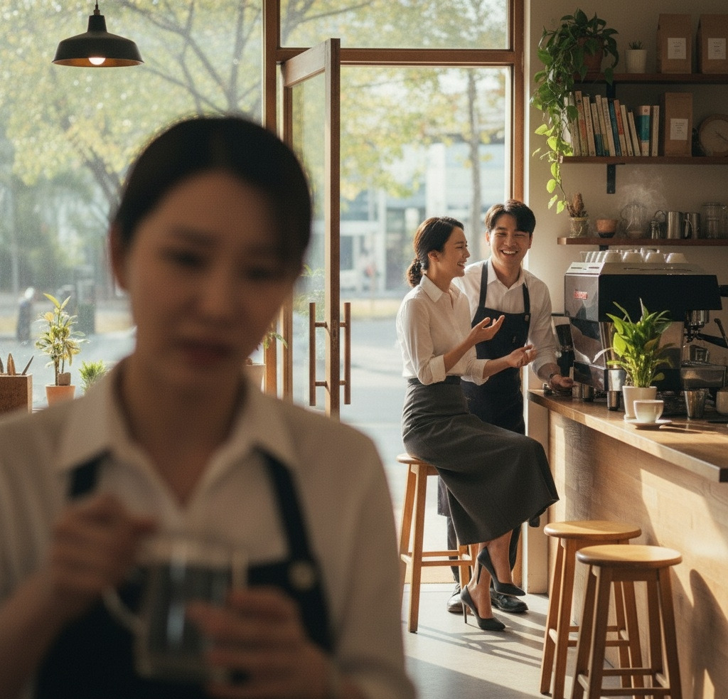 나는 창가 자리에서 컵을 닦고 있었고, 준혁은 평소처럼 커피를 내리고 있었다.