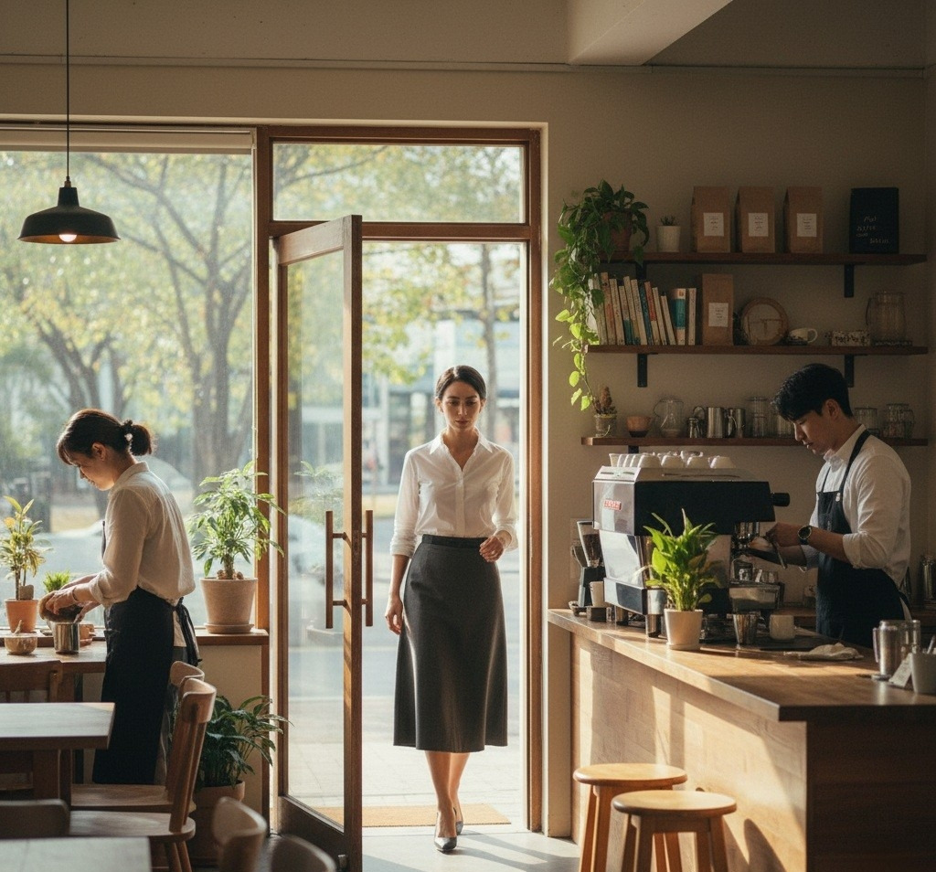 카페 문이 열렸다.