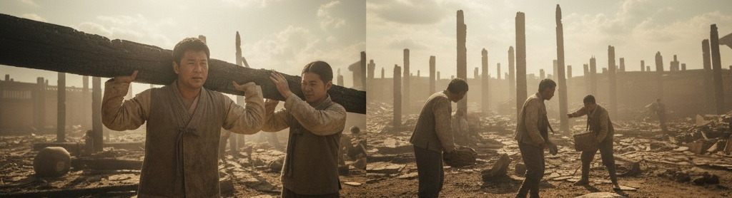 막심이 아주머니(눈시울을 붉히며) "이렇게 많은 분들이 오실 줄은 몰랐어요..."산돌: (무거운 들보를 들어 올리며) "윤서영 선생님께서 돌아가신 후로... 다들 마음이 아팠지요. 이제라도 학당을 다시 세워야 한다는 생각이 들었습니다."