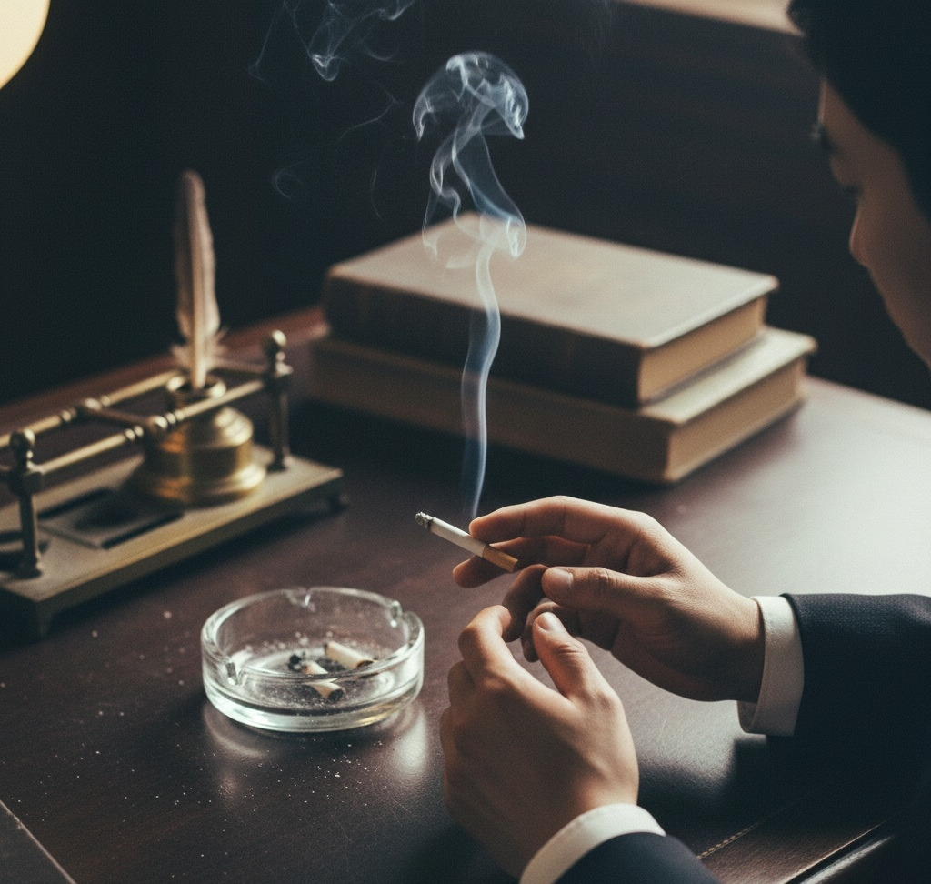 그는 담배를 꺼내 불을 붙였다. 연기가 천천히 피어올랐다.