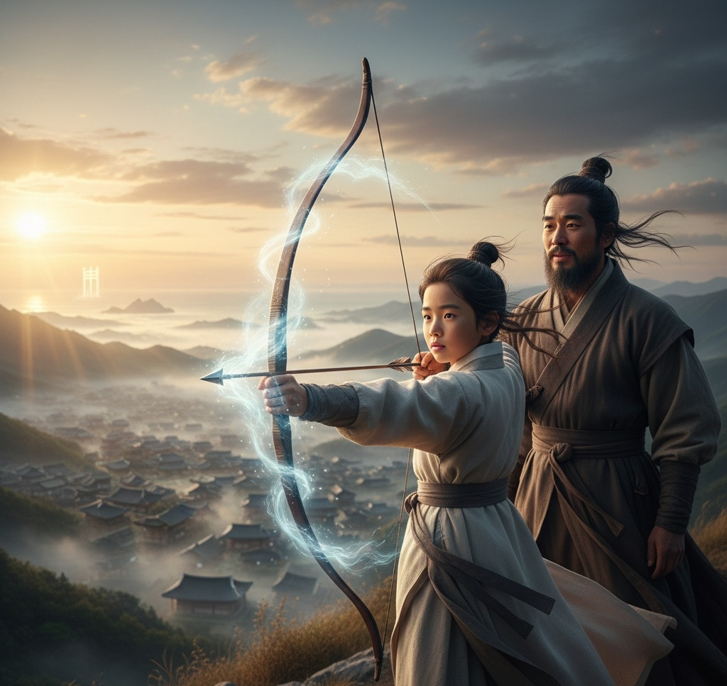 궁술 훈련이 한창이던 어느 날, 목표물은 멀리 떨어진 나무의 작은 표적이었다. 다른 훈련생들이 연신 과녁을 빗나가거나 겨우 가장자리에 맞출 때, 부루는 달랐다. 그가 활시위를 당기면, 기이하게도 화살 끝에 보이지 않는 바람이 응축되는 듯한 아우라가 피어올랐다.