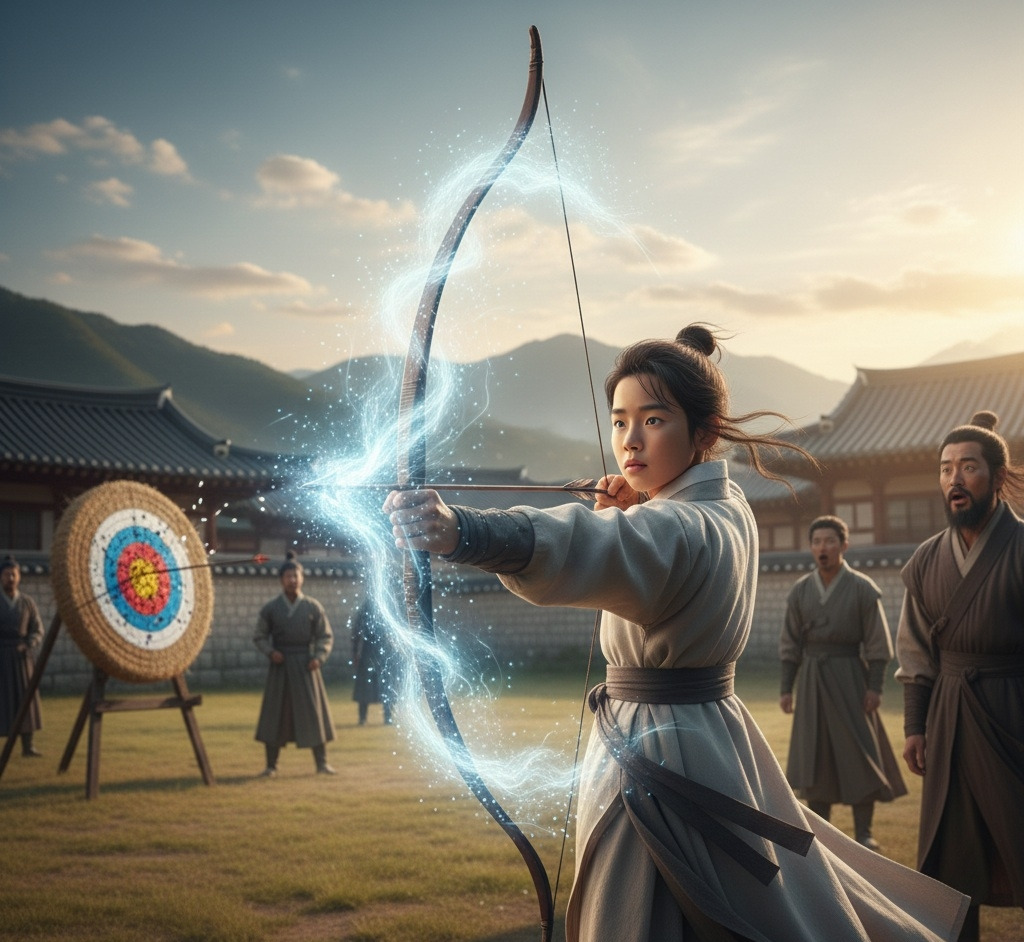 팽팽하게 당겨진 활시위가 놓이는 순간, 쏴아 하는 소리와 함께 화살은 마치 바람과 한 몸이 된 것처럼 허공을 갈랐다. 그리고 단 한 치의 흔들림도 없이 정확히 표적의 정중앙을 꿰뚫었다.