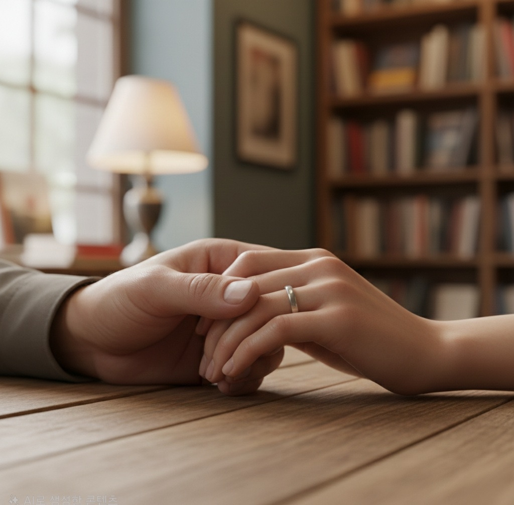 그 말에 준혁은 조용히 그녀의 손을 감싸 쥐었다.
