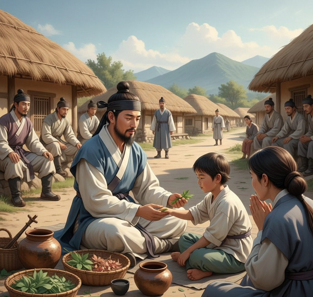 또한 그는 의술을 가르쳤다. 봉래에서 얻은 생명의 본질에 대한 깨달음은 그에게 약초의 효능과 질병의 원인을 꿰뚫어 보는 통찰력을 주었다. 그는 아픈 자들을 보살피고, 상처 입은 자들을 치유하며 백성들의 건강과 안녕을 지켰다. 그의 손길이 닿는 곳마다 병이 물러나고 활기가 되살아났다.