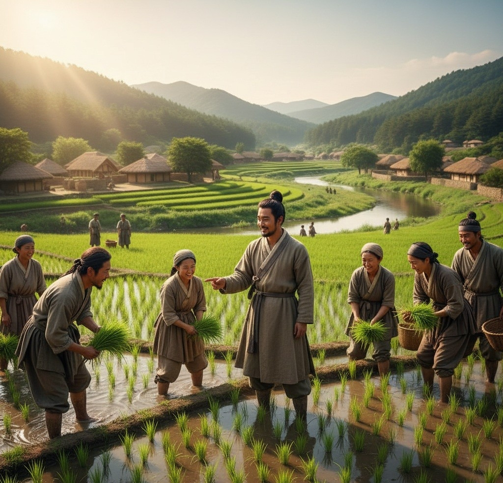 부루는 백성들과 어울려 살며 그들의 고통과 기쁨을 함께 나누었다. 그는 농사짓는 법을 가르쳤다. 단순히 씨앗을 뿌리고 물을 주는 것을 넘어, 흙의 기운을 이해하고 바람의 흐름을 읽는 지혜를 전수했다. 그의 가르침 덕분에 아사달의 농업은 더욱 풍요로워졌고, 백성들은 더 이상 굶주림에 허덕이지 않게 되었다.