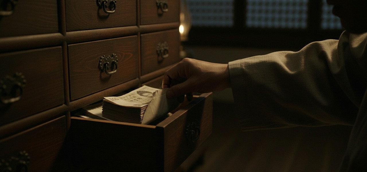 서랍을 열자, 두툼한 봉투가 모습을 드러냈다. 안에는 상당한 액수의 돈이 들어 있었다. 돈 냄새가 방 안을 가득 채웠다.