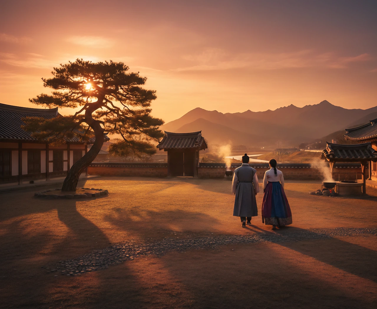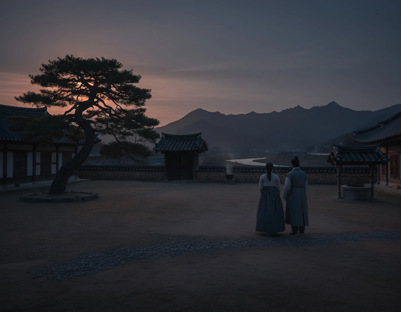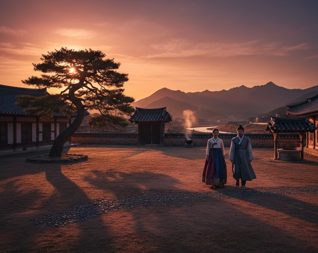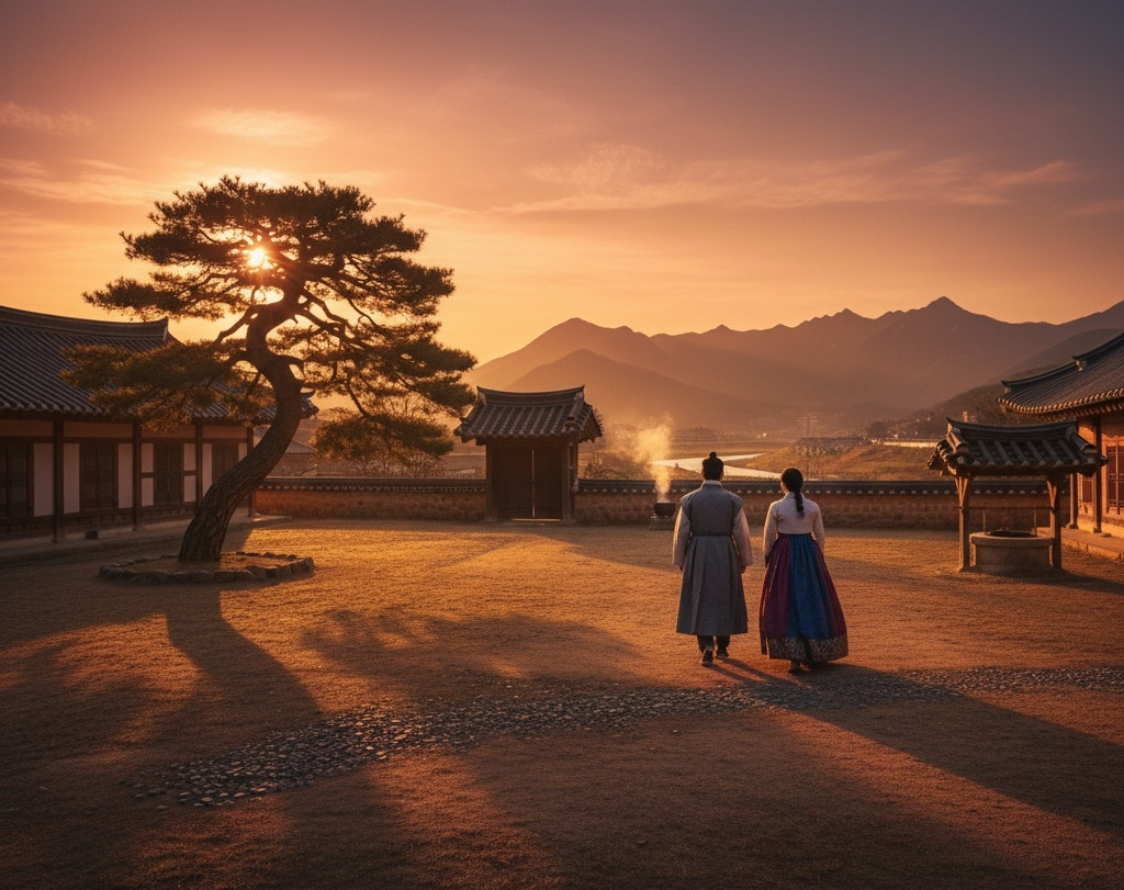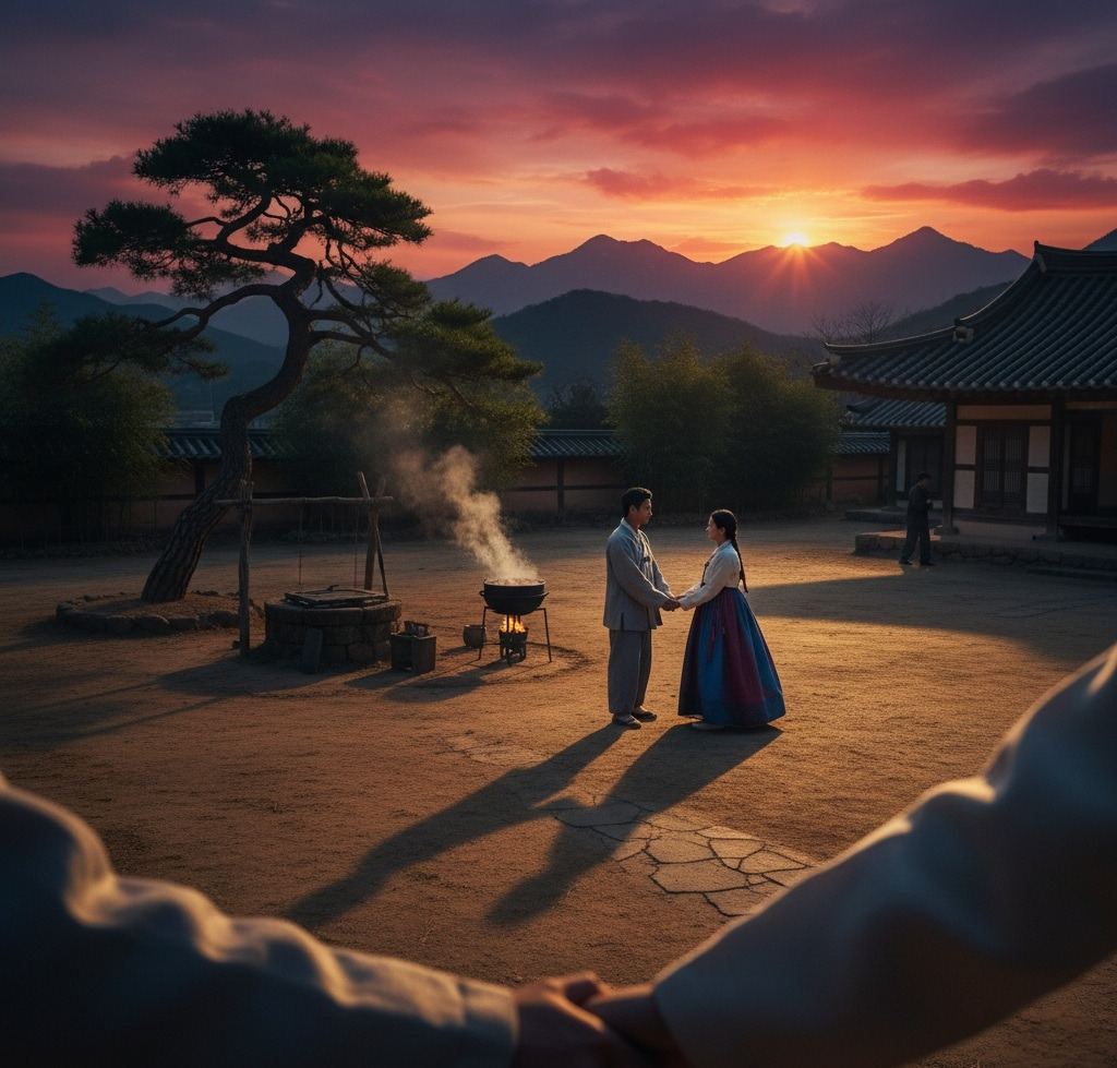 석양의 마지막 빛이 마당 끝을 스칠 때, 두 사람은 나란히 섰다.