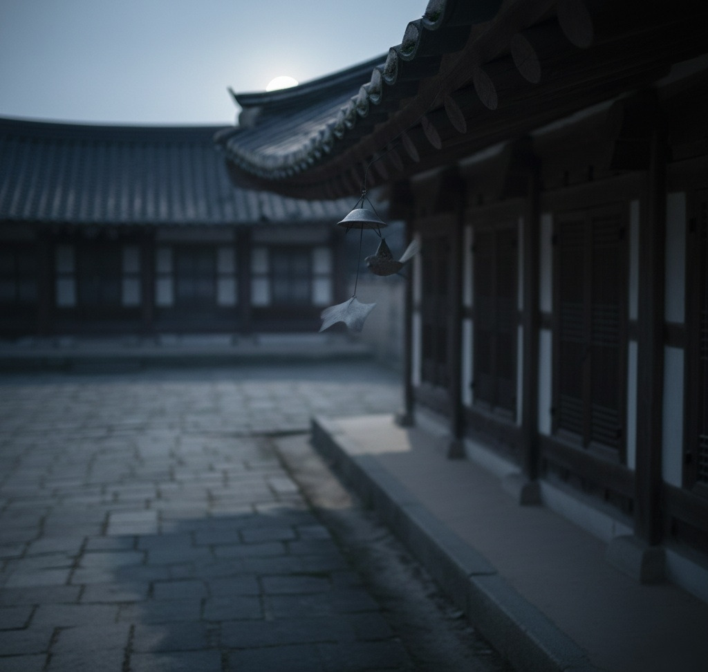 기와지붕 끝에 붙은 작은 쇠물이 바람에 울며, 한 번, 두 번… 잔잔하게 소리를 냈다.
