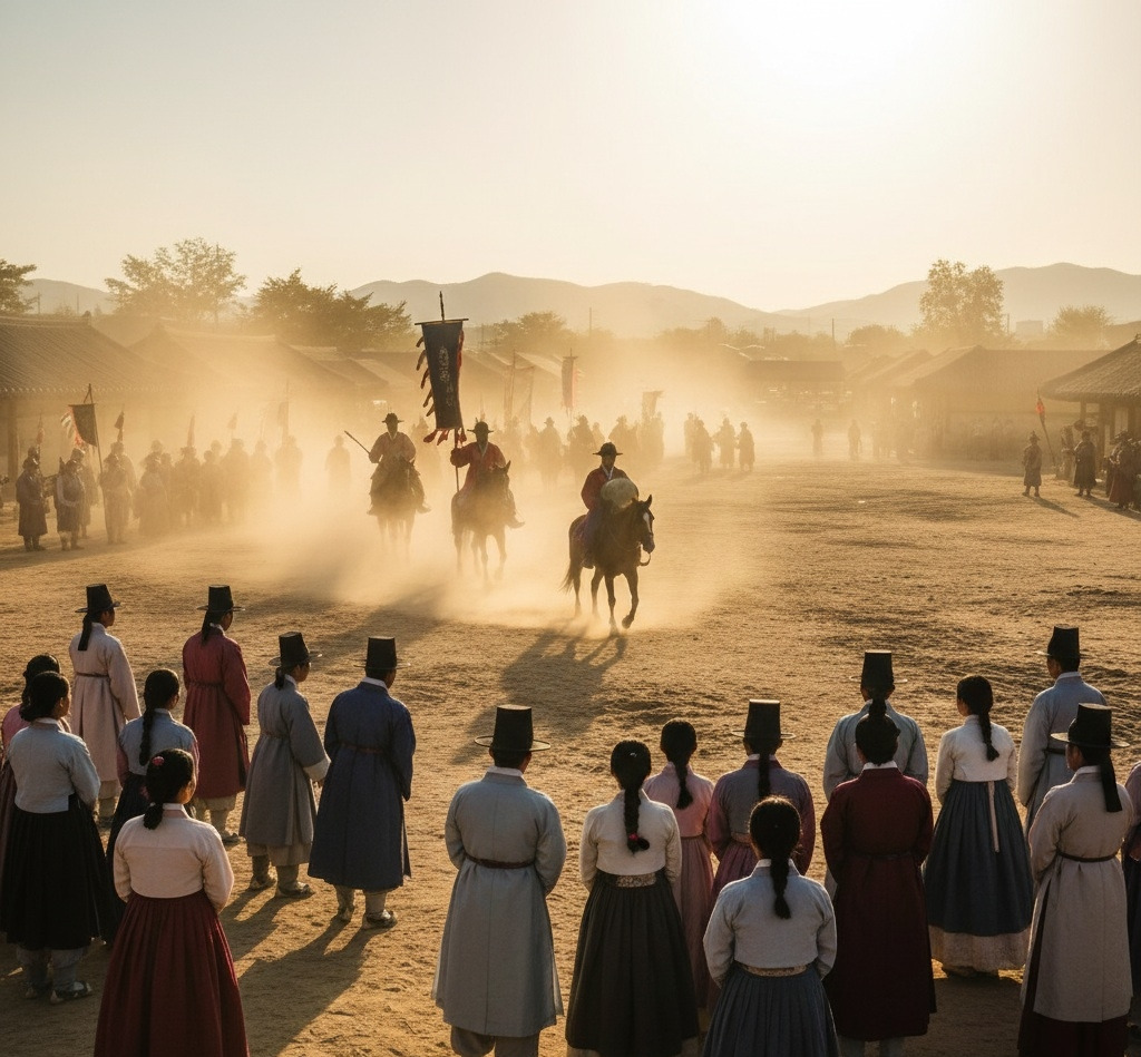 신부 행렬이 도착할 시간이 다가오자, 마당의 공기는 긴장감으로 변했다.