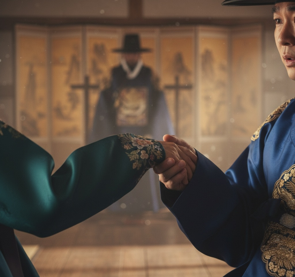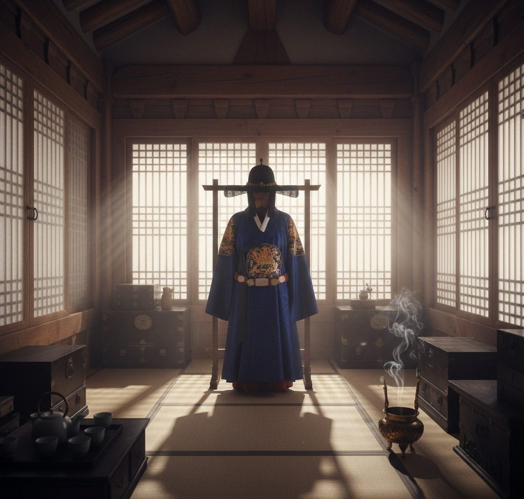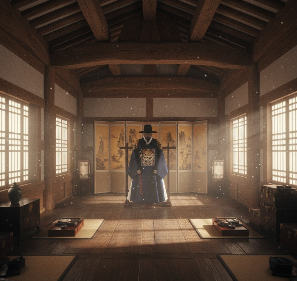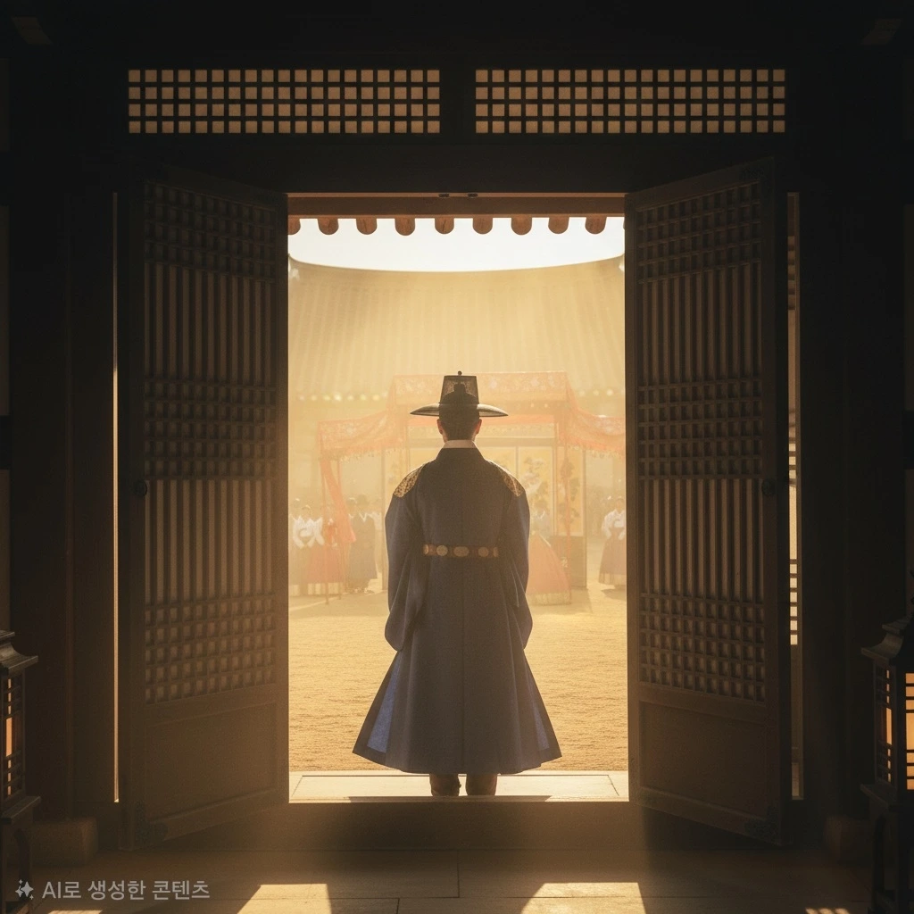 이산갑은 검은색 사모관대를 입고 있었다. 그의 얼굴은 평소와 달리 긴장해 보였다.