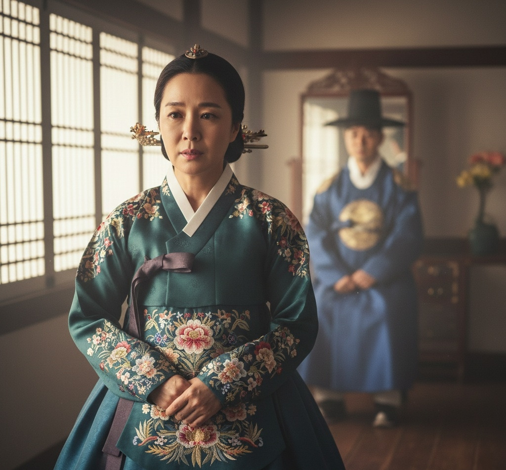 민지영은(시어머니로서 미소 지으며) "아들아, 오늘만큼은 화려해야지. 평생에 한 번뿐인 날인데."
