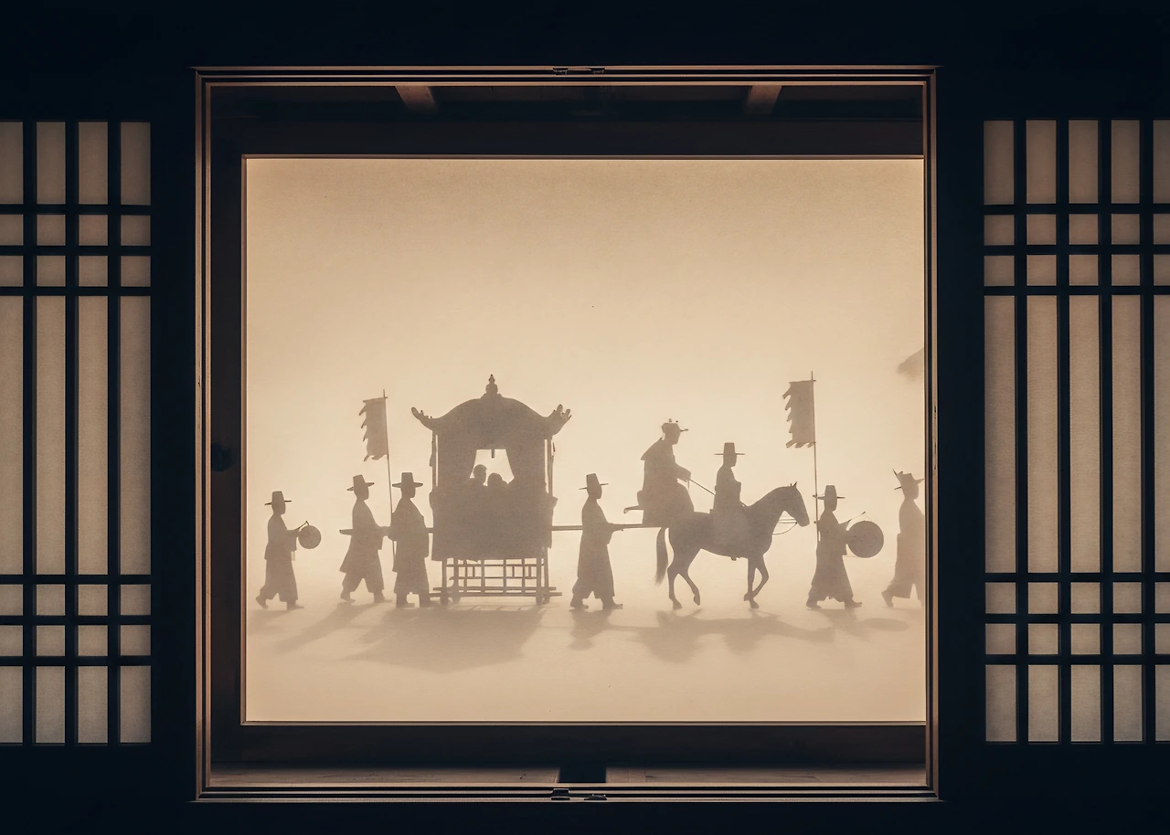 창호지 문 너머로 들려오는 혼례 준비 소리—