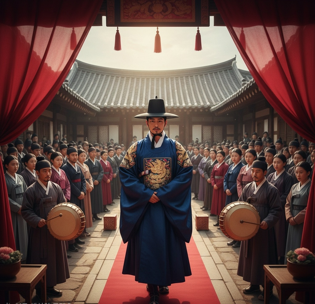 곧이어 이산갑이 검은 사모관대를 바르게 갖춰 입고 나타났다. 단령의 매무새는 무겁고도 엄숙했다. 평소 학당에서 소탈한 옷차림으로 아이들과 책을 읽던 그의 모습과는 전혀 달랐다.