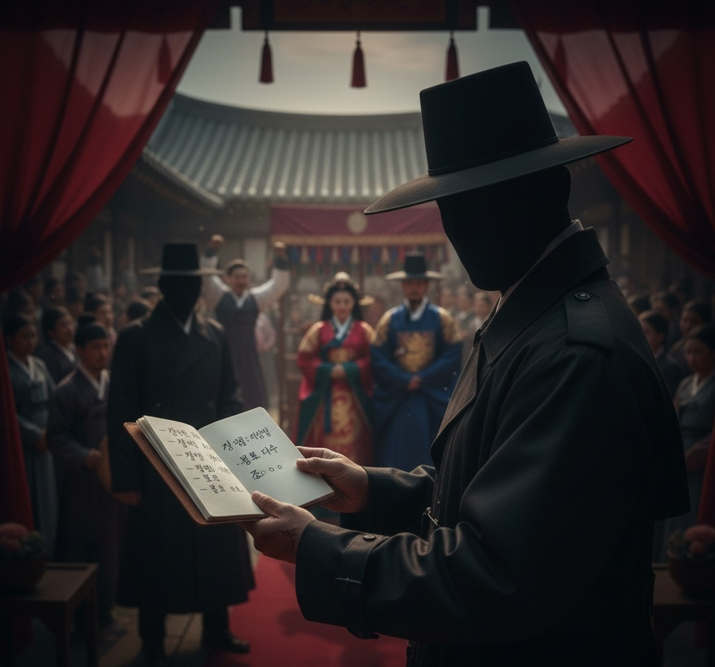 오늘 이 밝고 성대한 자리에도, 보이지 않는 어둠이 숨 쉬고 있다는 사실이 그를 더욱 긴장시키고 있었다.