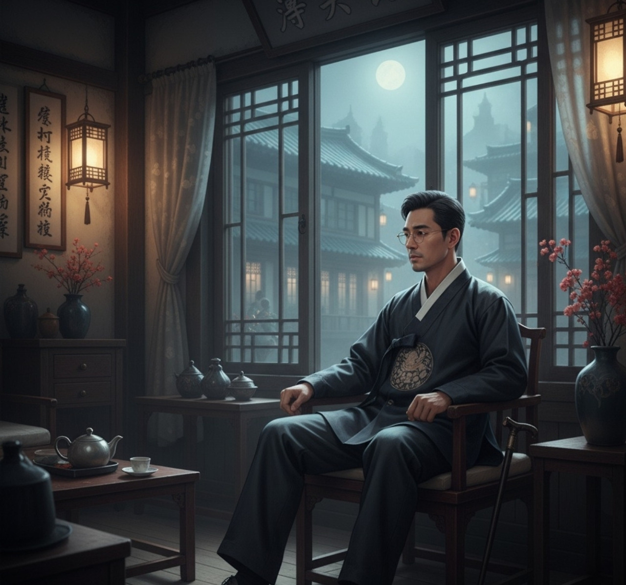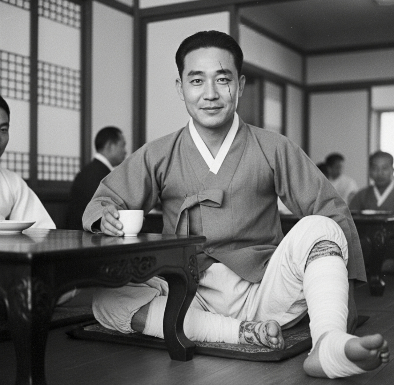 2층 귀빈실, 은은한 향내가 감도는 방 안에는 서른다섯의 신우혁(申宇赫)이 앉아 창밖을 응시하고 있었다. 그의 단정한 한복은 흐트러짐이 없었고, 금테 안경 너머의 눈빛은 얼핏 온화해 보였으나, 그 속에는 깊이를 알 수 없는 차가운 그림자가 드리워져 있었다. 그가 몸을 움직일 때마다 오른쪽 다리가 미세하게 절었다. 1929년, 광주학생 항일운동의 격랑 속에서 일본인 헌병의 총탄이 남긴 상처였다. 부러진 다리뼈는 제대로 아물지 못했고, 그는 평생 이 상흔을 짊어지고 살아가야 했다.
