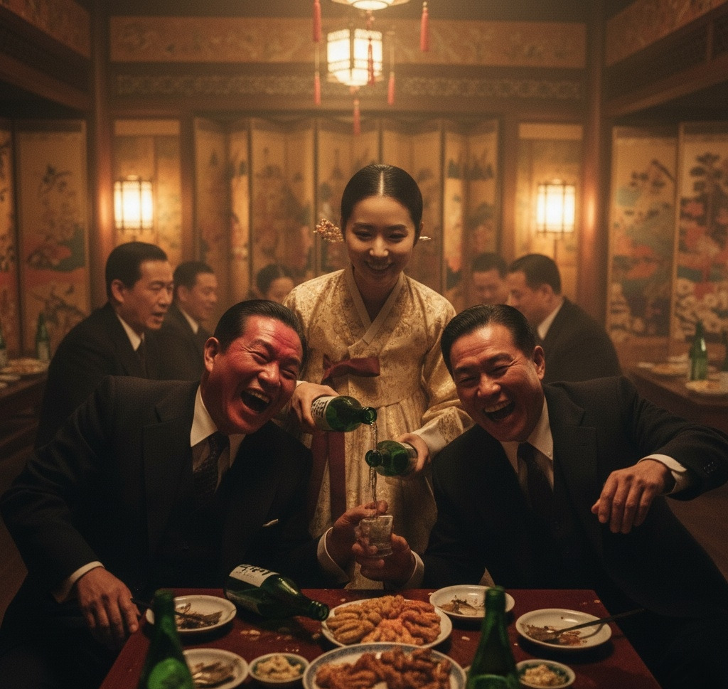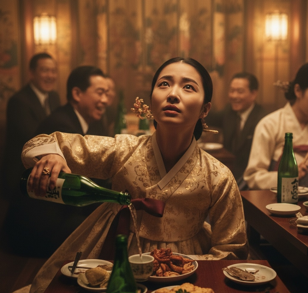 술에 취한 일본 관리들은 기생의 손을 잡고 노골적인 농담을 했다.