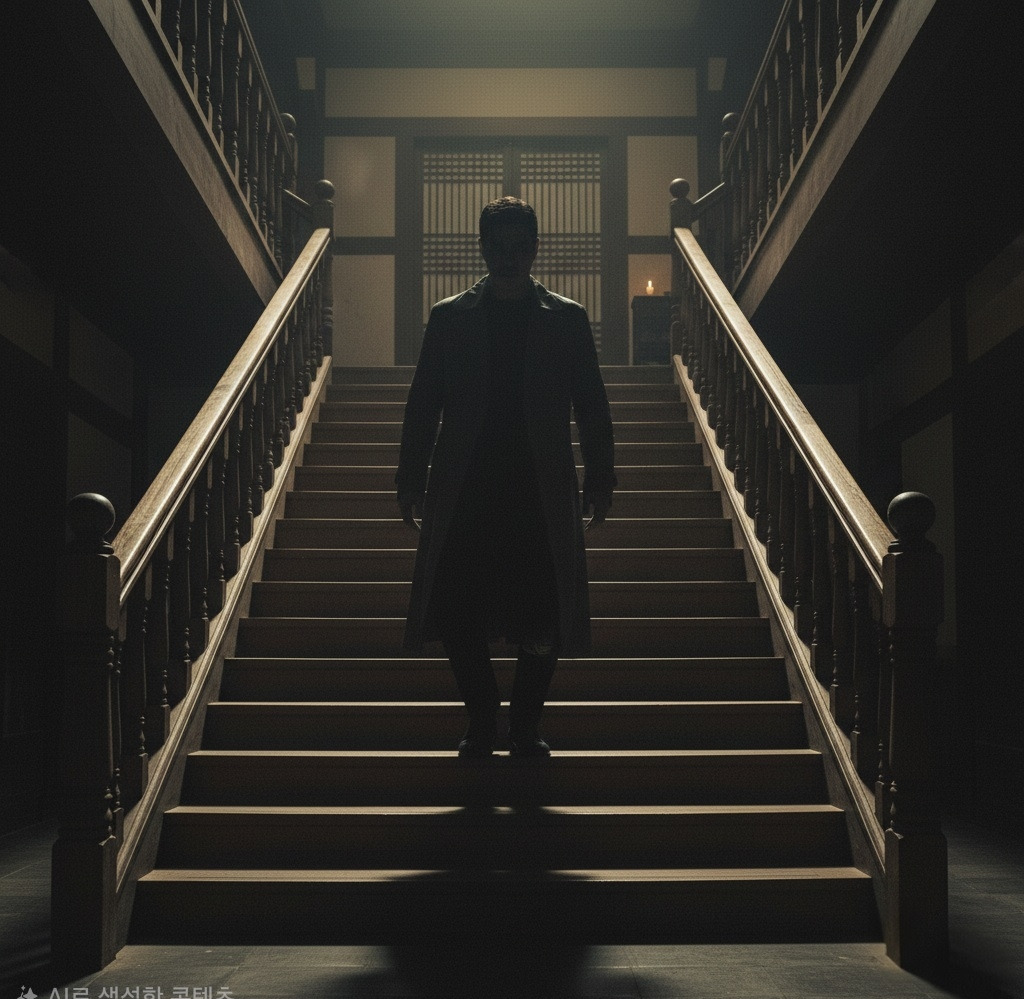 그는 그림자처럼 계단에 섰다.