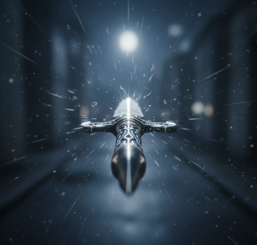 단도는 정확히 치명적이지만 잔혹하지 않은 지점에 박혀 있었다.
