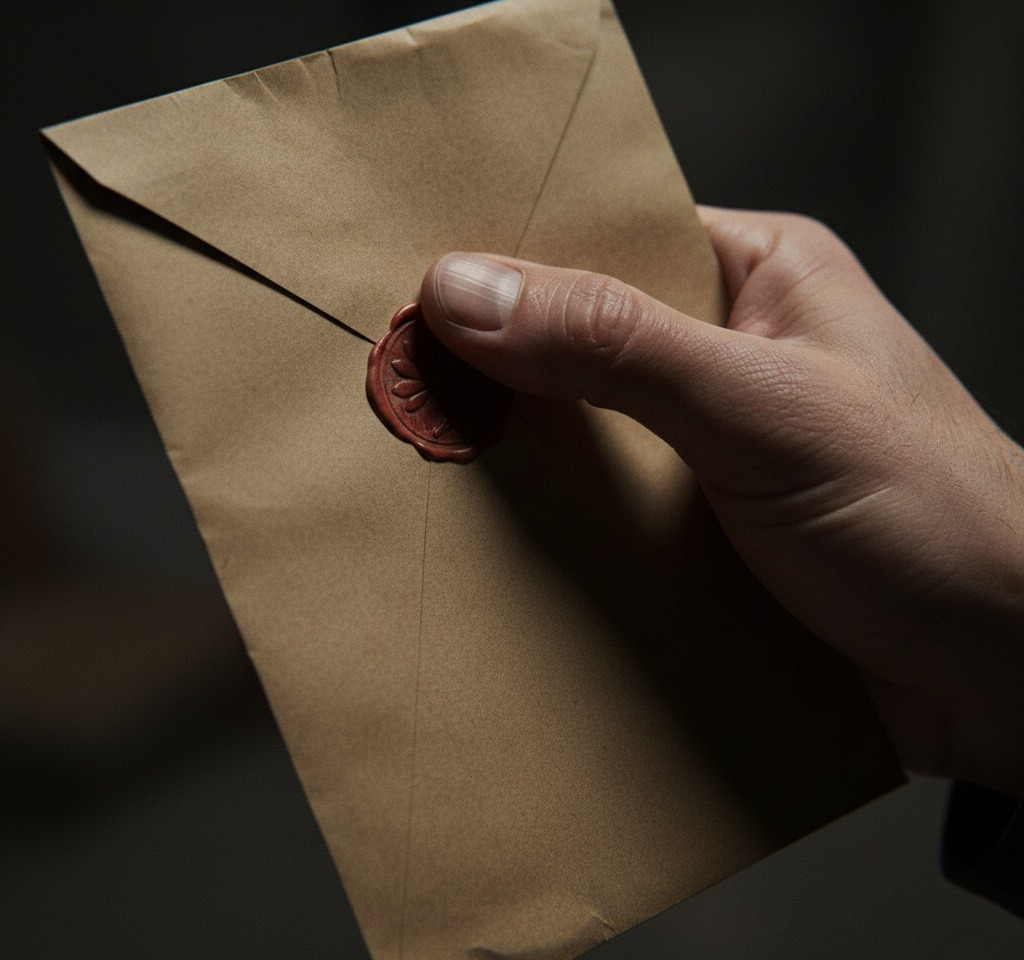 그는 봉투를 조심스럽게 품속 깊이 넣었다.
