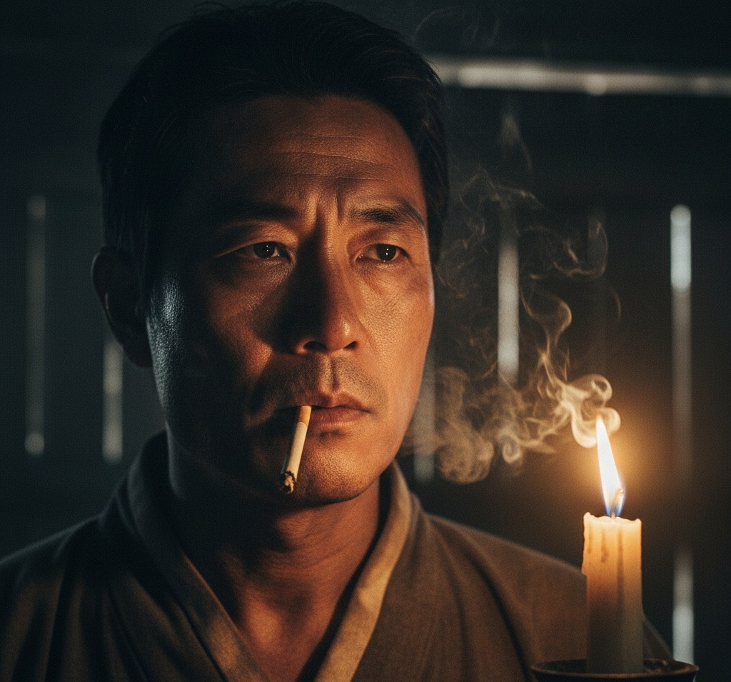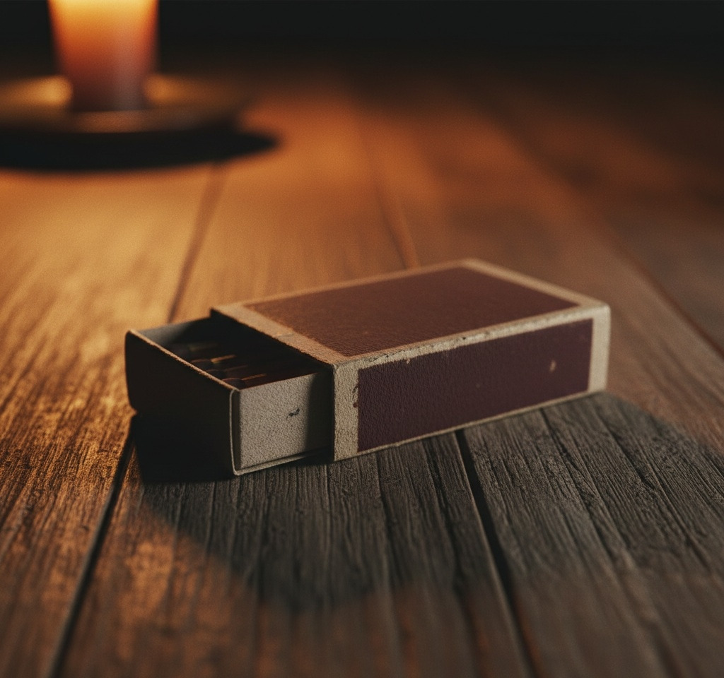 박성표는 성냥갑 하나를 꺼내, 촛불 옆 테이블에 ‘톡’ 하고 내려놓았다.