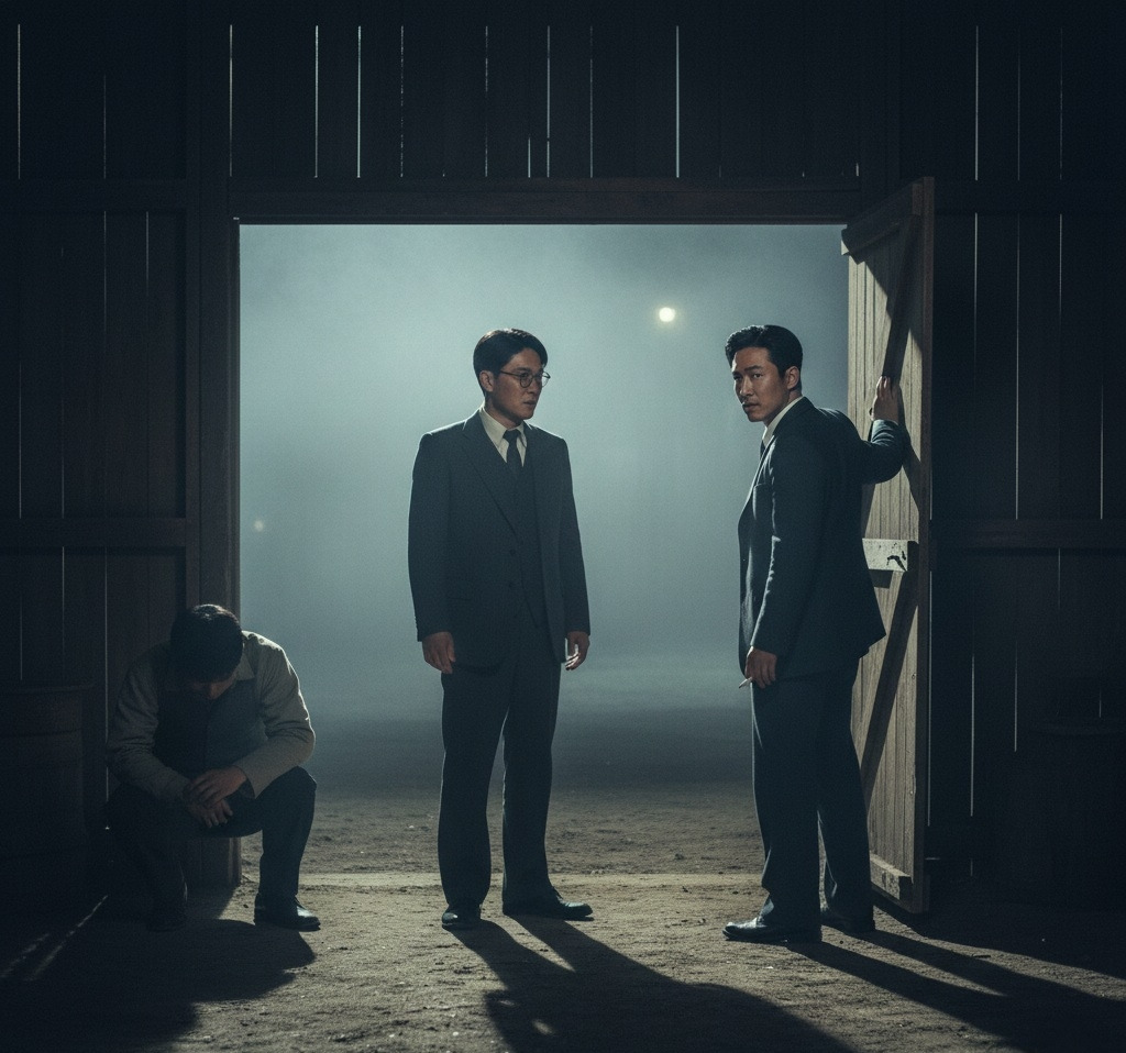 그 불빛은 환한 게 아니라, 오히려 세 남자의 그림자를 길게 찢어놓는 듯했다.