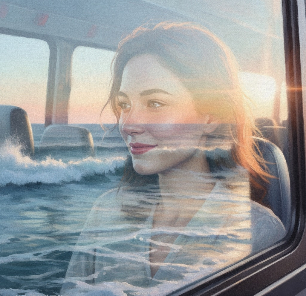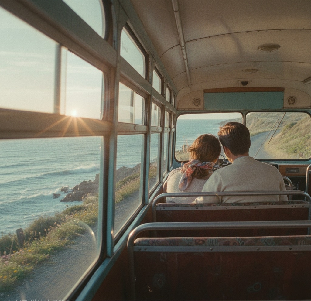 해안도로를 달리던 오래된 버스,