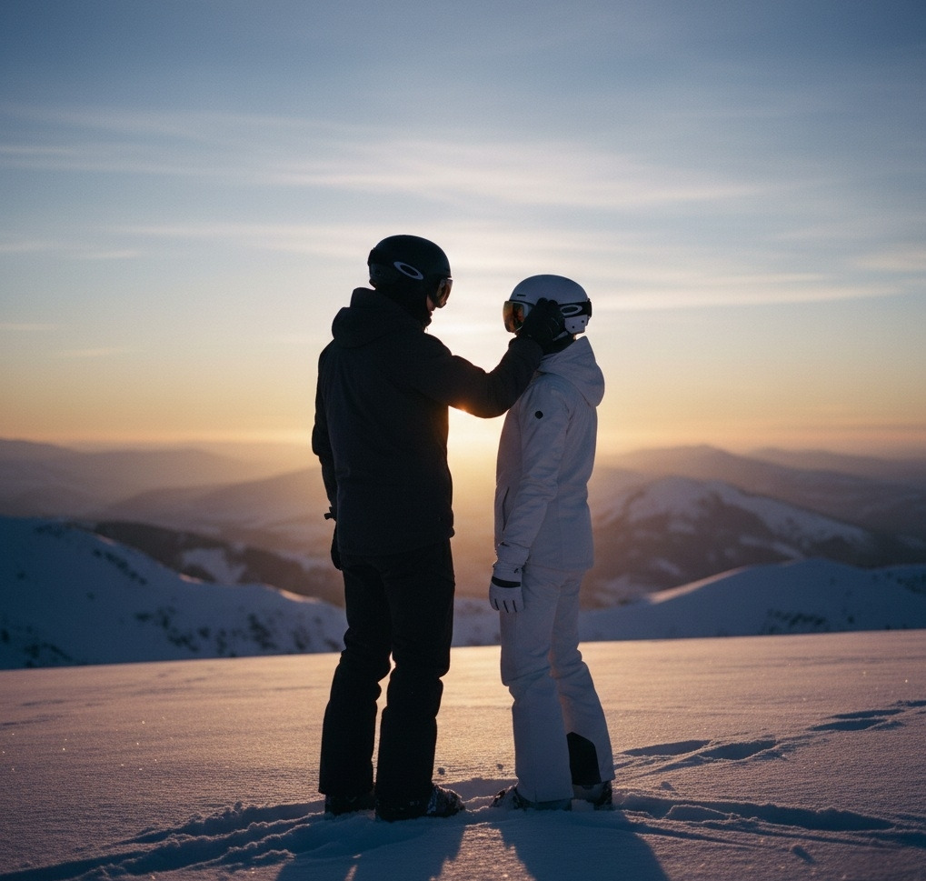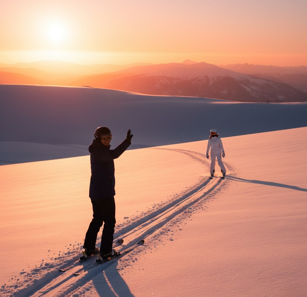 저녁이 내려앉은 슬로프에서