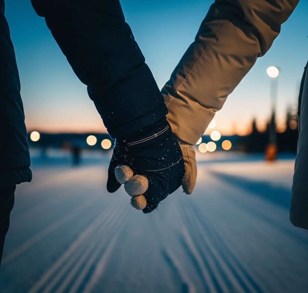 당신은 장갑을 낀 내 손을 슬쩍 잡아 주었지요.