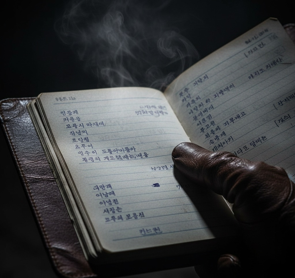 그의 손가락이 수첩을 천천히 훑었고, 멈춘 곳에는 익숙한 이름이 있었다.