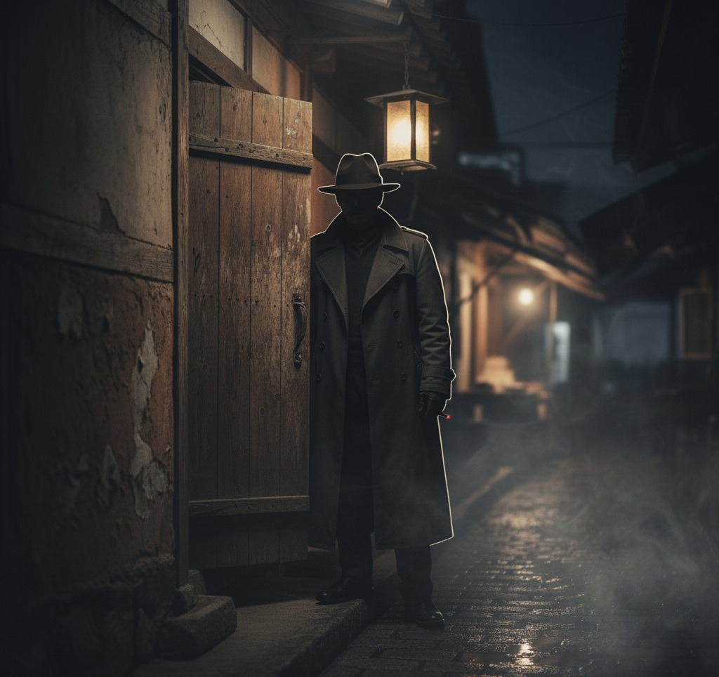 그는 늘 그렇듯 조용히, 그러나 위압적인 존재감으로 서 있었다. 어둠의 일부처럼 움직이는 남자였다.