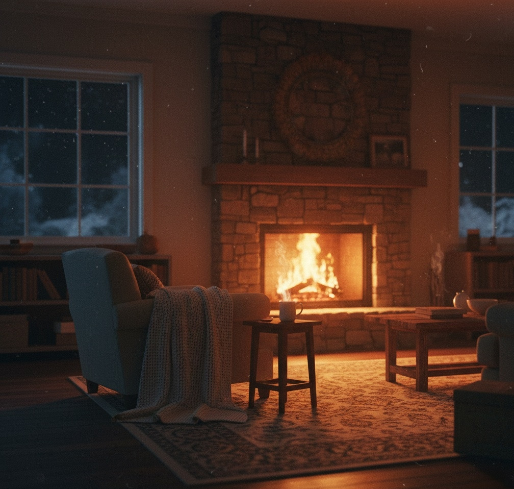 벽난로 불빛아래