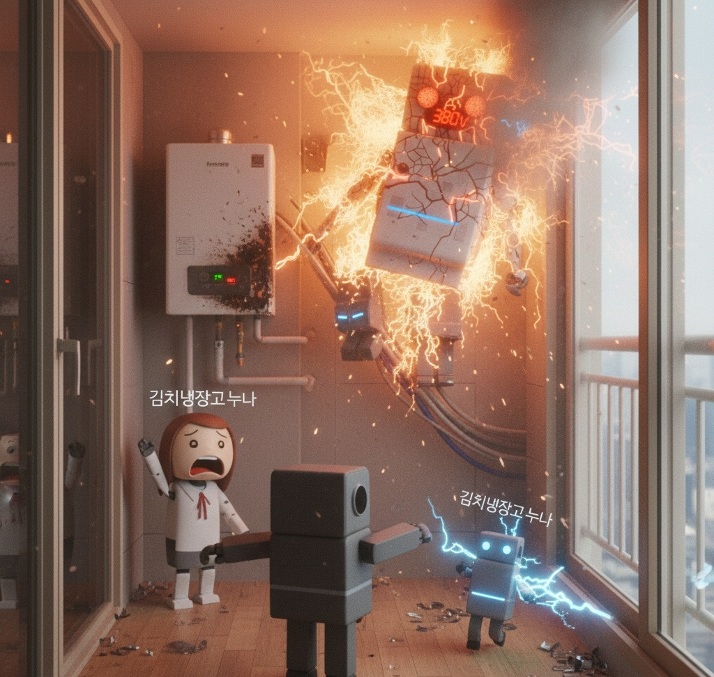 베란다에 설치된 보일러 제어판에 380 볼트가 유입되기 시작했다. 보일러의 전자제어판이 지지직거리며 연기를 뿜어냈다.