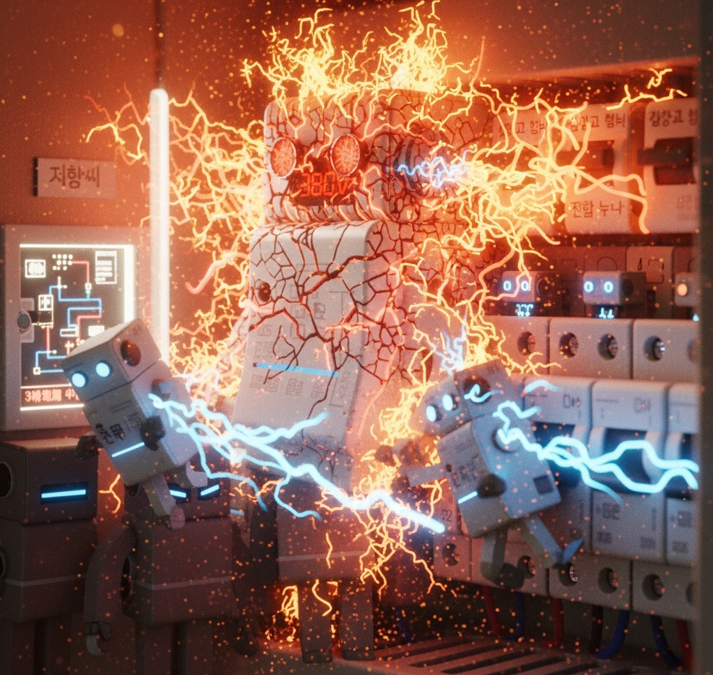 전압씨가 몸부림쳤다. 그의 내면에서 220 볼트의 본성과 380 볼트의 광기가 싸우고 있었다.