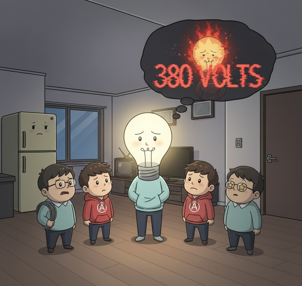 "나는 30년 동안 220볼트로 살아왔어. 그게 내 정체성이고, 내 존재 이유야. 하지만 3일 전... 380볼트가 됐을 때..."