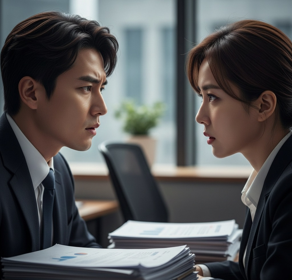 두 사람은 서로를 바라보았다. 창밖의 바람이 더 세게 불었다. 건물이 미세하게 흔들리는 것 같았다.